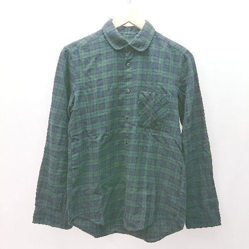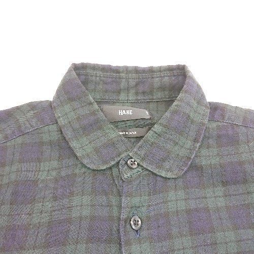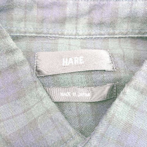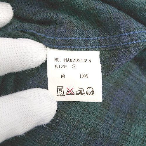 ◇ HARE ハレ コットン100% チェック柄 シンプル 長袖 Yシャツ サイズS グリーン レディース E