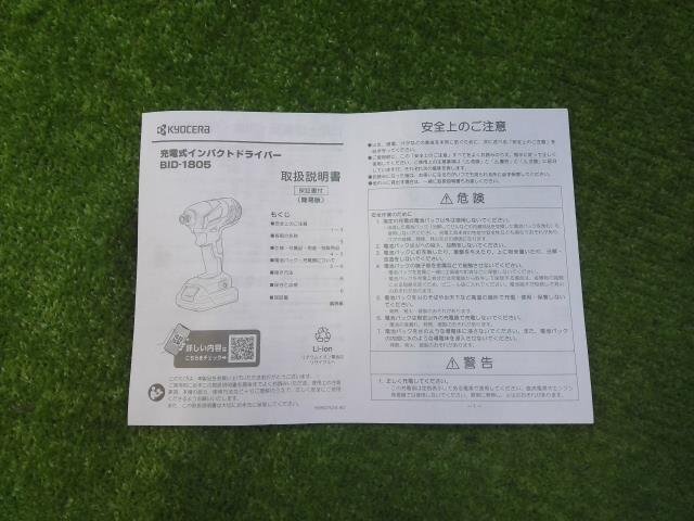 | 備考 | KYOCERA BID-1805 インパクトドライバー