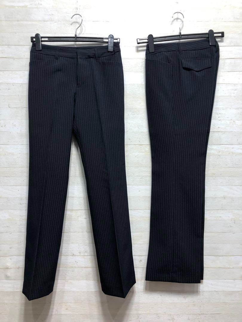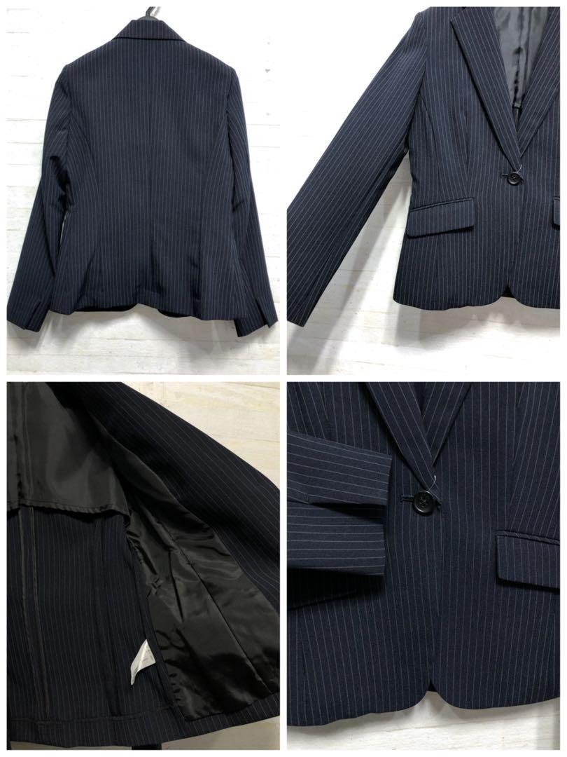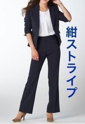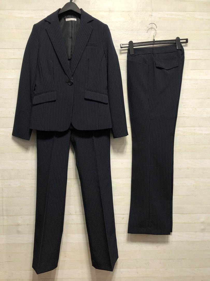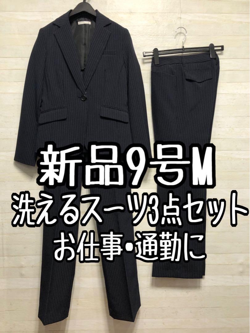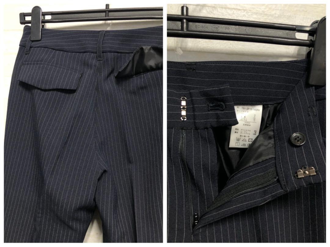 新品☆9号M♪紺系×ストライプ♪ベーシックパンツスーツ♪パンツ2本付〇D328