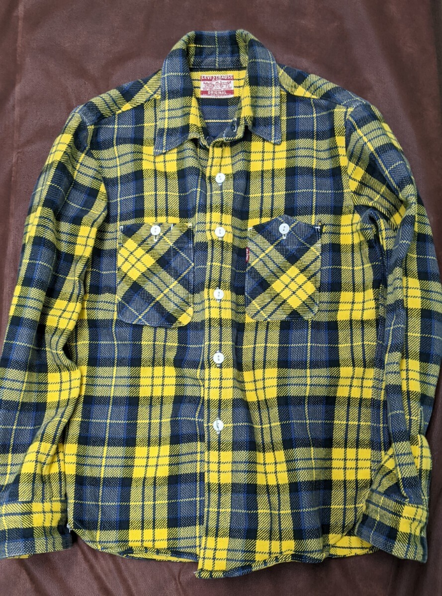 レア 希少 カッコいい 美品◆【キムタク着用 木村拓哉着】Levi's リーバイス ヘビーネルシャツ CPO 黄×ブルー サイズ/S◆ヴィンテージ