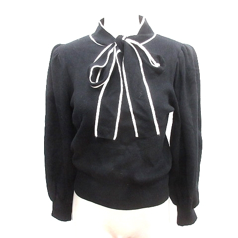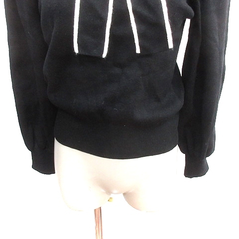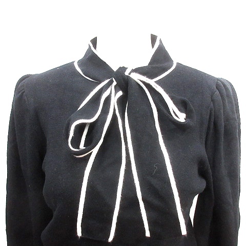ナイスクラップ NICE CLAUP continuer de NICE CLAUP ニット セーター ボウタイ パイピング ボリュームスリーブ 長袖 F 黒 ブラック