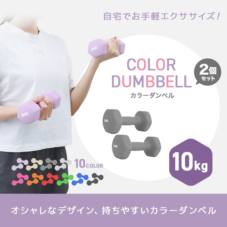\ 2022年 話題の血色カラー登場 / フィットネスから筋力トレーニングなど、様々なエクササイズに最適なダンベルです! クロロプレンゴム仕様で握りやすい! 手にしっかりフィットし、滑りにくく使いやすいです。 また、多角形デザインで転がりにくく、収納しやすい☆ 女性でも無理なく、楽しく運動を始められます♪ 【商品仕様】 カラー:ライラック サイズ:(約)幅22.5×高さ10cm 重量:(約)10kg(1個あたり) 材質:クロロプレンゴム(合成ゴム)、スチール 【商品内容】 カラーダンベル 10kg ×2個 【注意事項】 ※重量の表記は目安となります。若干の誤差が出る場合がありますのでご了承ください。 ※ダンベルを引きずるなど、接触・摩擦によって他製品へ色移りする可能性がありますのでご注意ください。 |