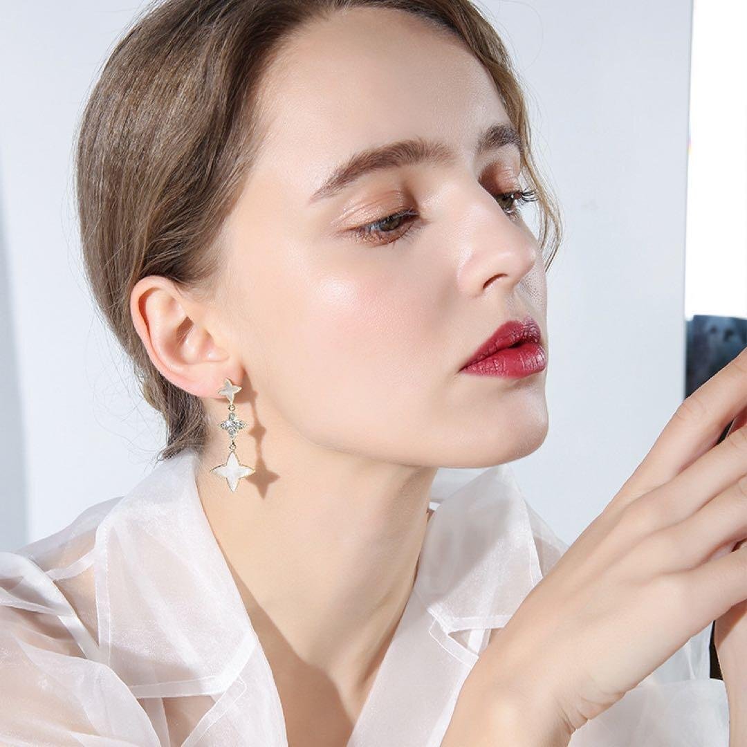 新品 三連星形ピアス レディースピアス 四芒星ピアス 大人気 シルバー925ピアス アレルギー対応