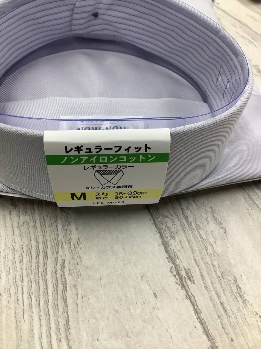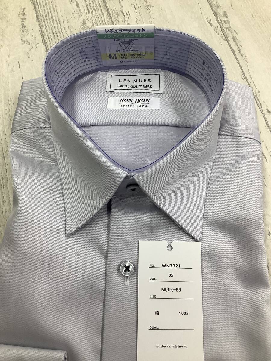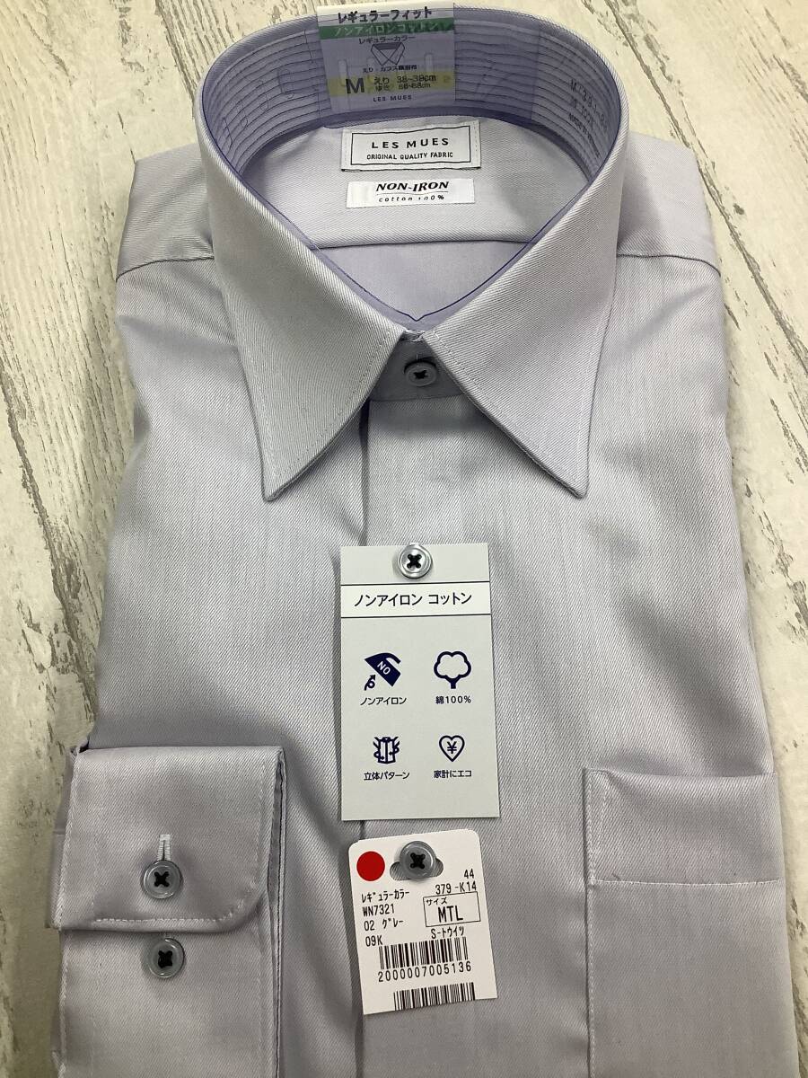 39-88 ★長袖Mサイズ ★淡いシルバーグレー色 無地感ドビー柄生地 レギュラーカラー 定価4,990円 綿100%ドレスシャツ