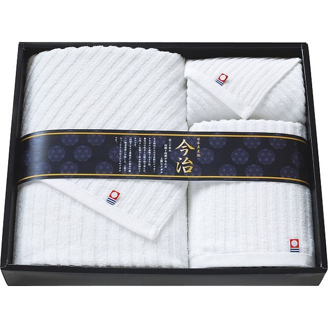 純白の糸をシンプルな畔柄で織り上げた、どんな時でもどなたにも、使い勝手の良い今治仕立てのタオルギフトです。パイルのコシと変化のある凹凸が肌触りも良く拭き心地も爽快なタオルです。