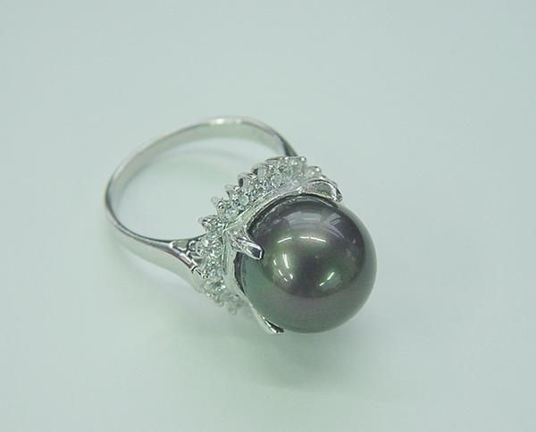 宝石材質 : 人工貝パール 11mm (ブラック)、キュービックジルコニア 21石