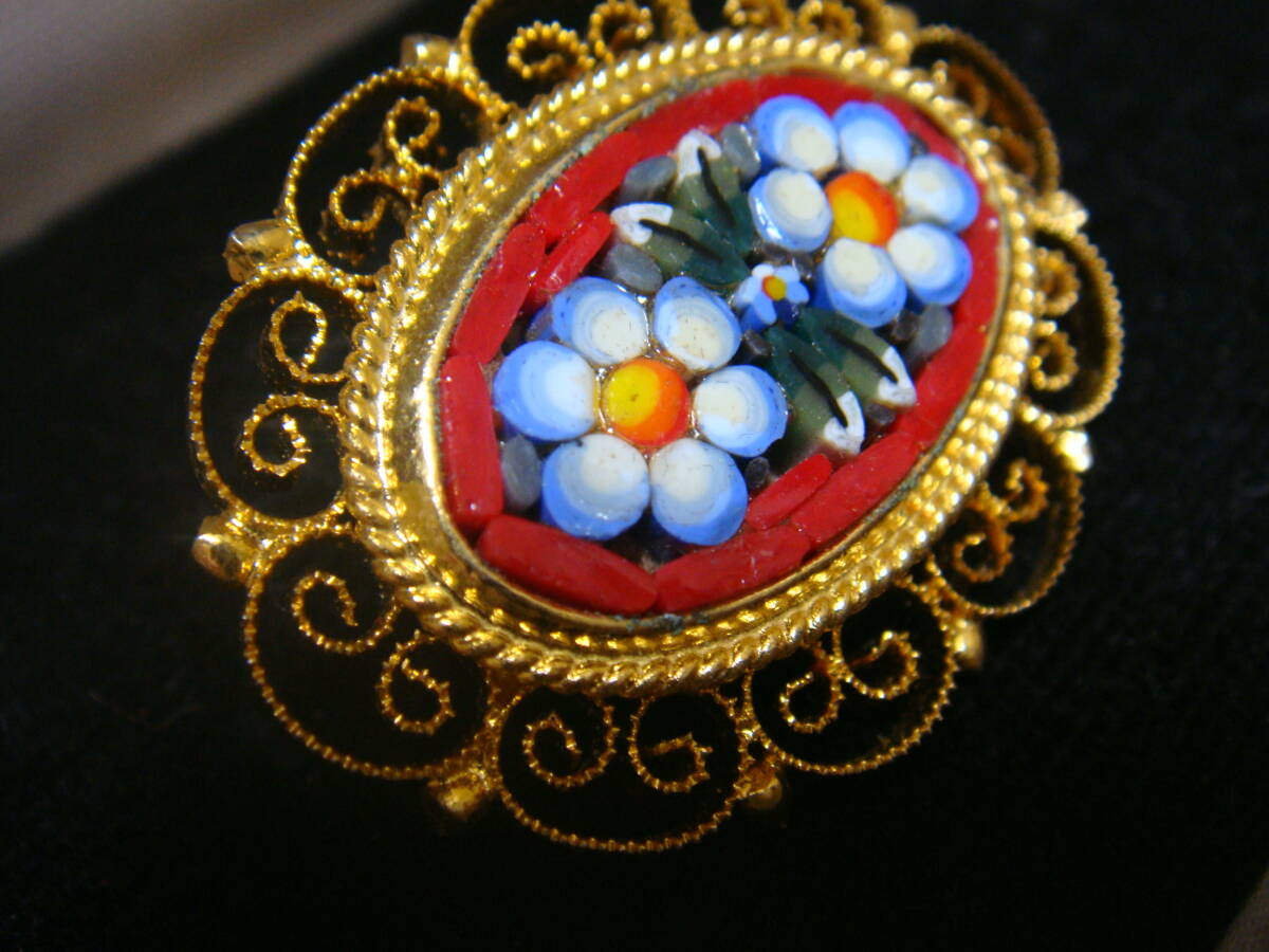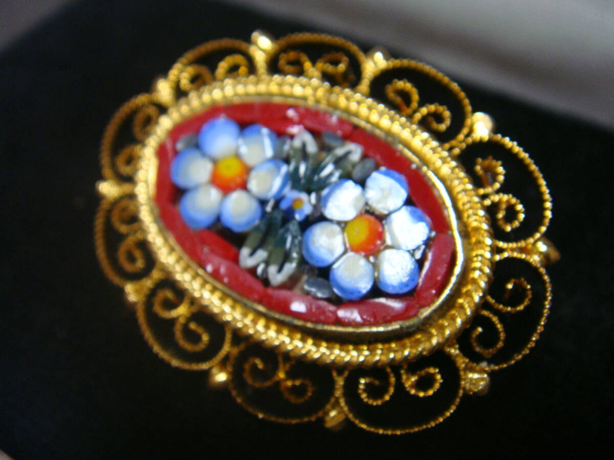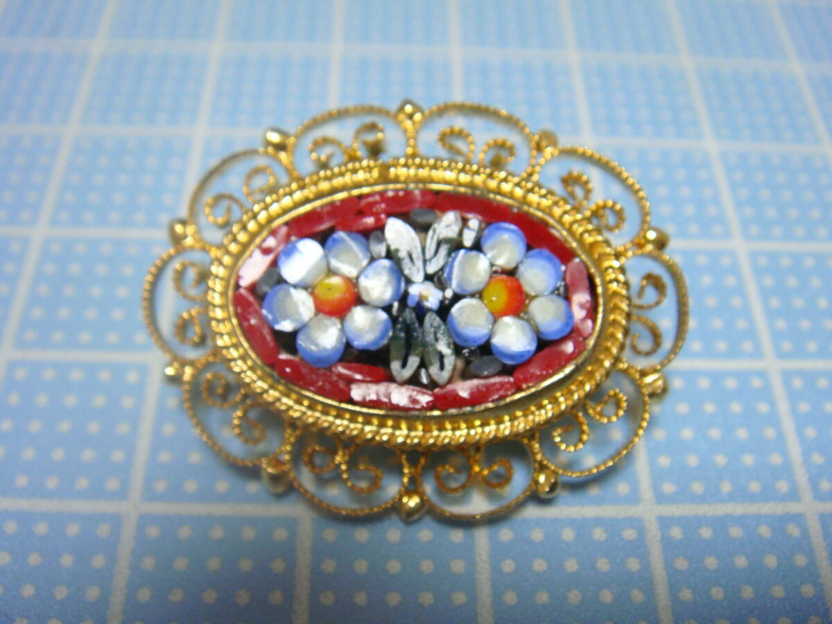 ◆アンティーク ヴィンテージ ローマンモザイク マイクロモザイク ブローチ◆