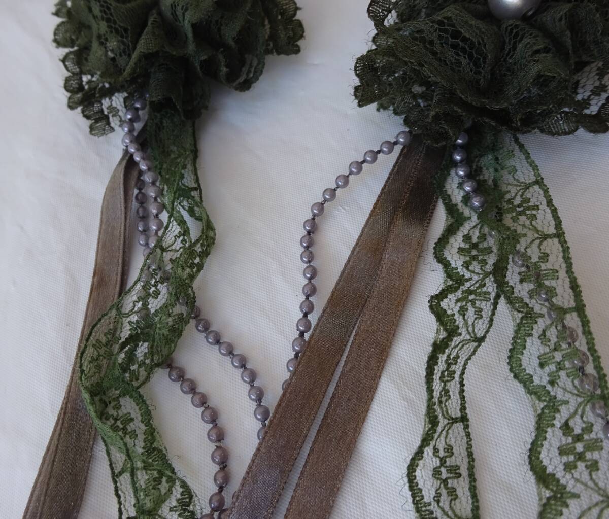 ●色 カーキ、リボンの部分グレー