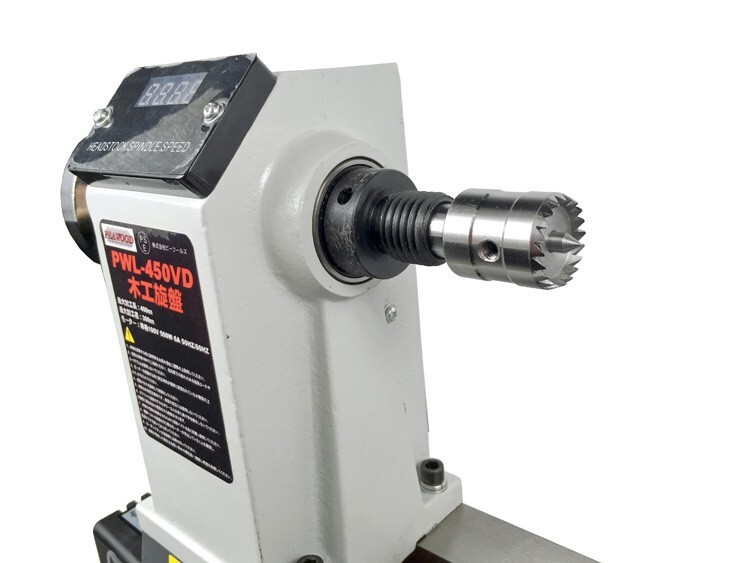PWL-450VD標準付属のドライブセンターと比べ刃数が多く小さい為材料を押さえやすくなります。またセンターピンの内部にスプリングを入れてあり材料を押し込むと同時にピンが沈む様になっています。
