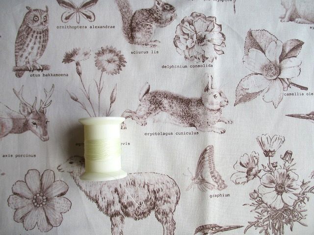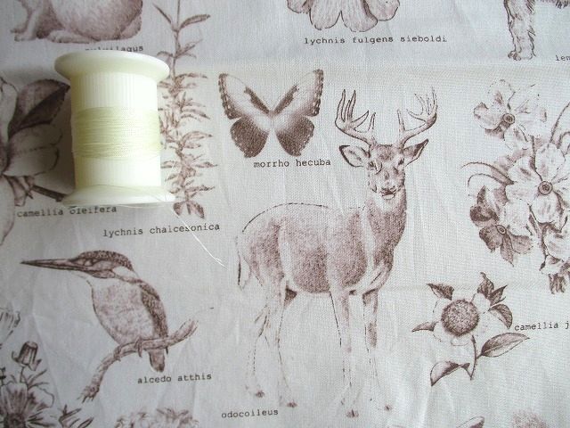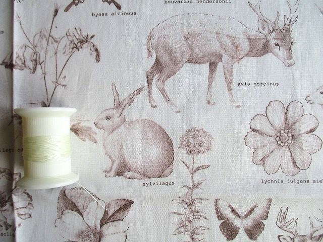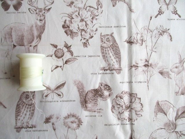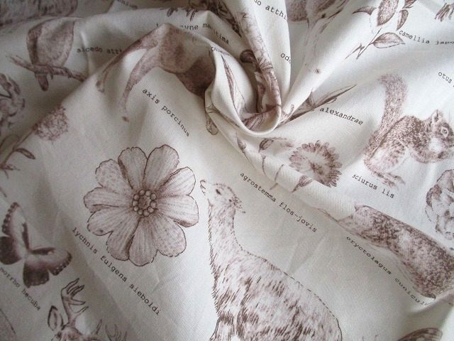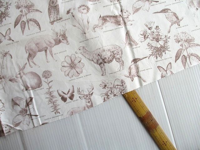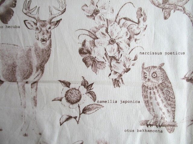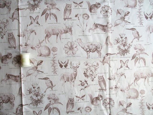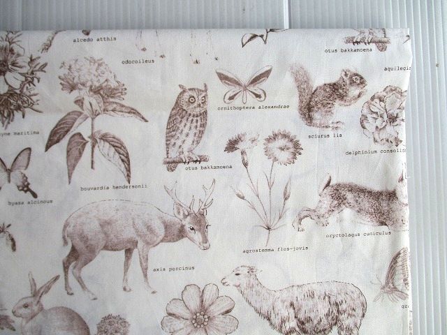 | ◆白地フクロウやうさぎ花図鑑プリント生地 *65㎝ | |||