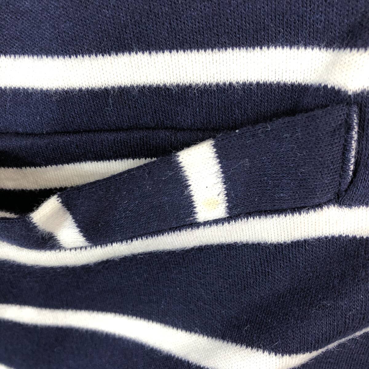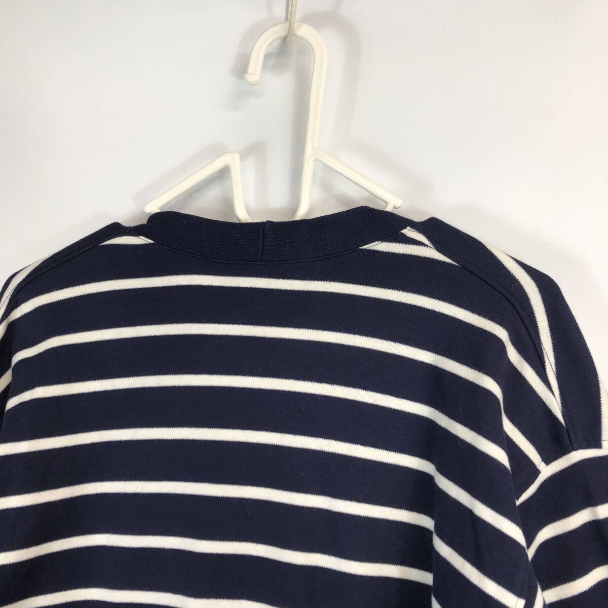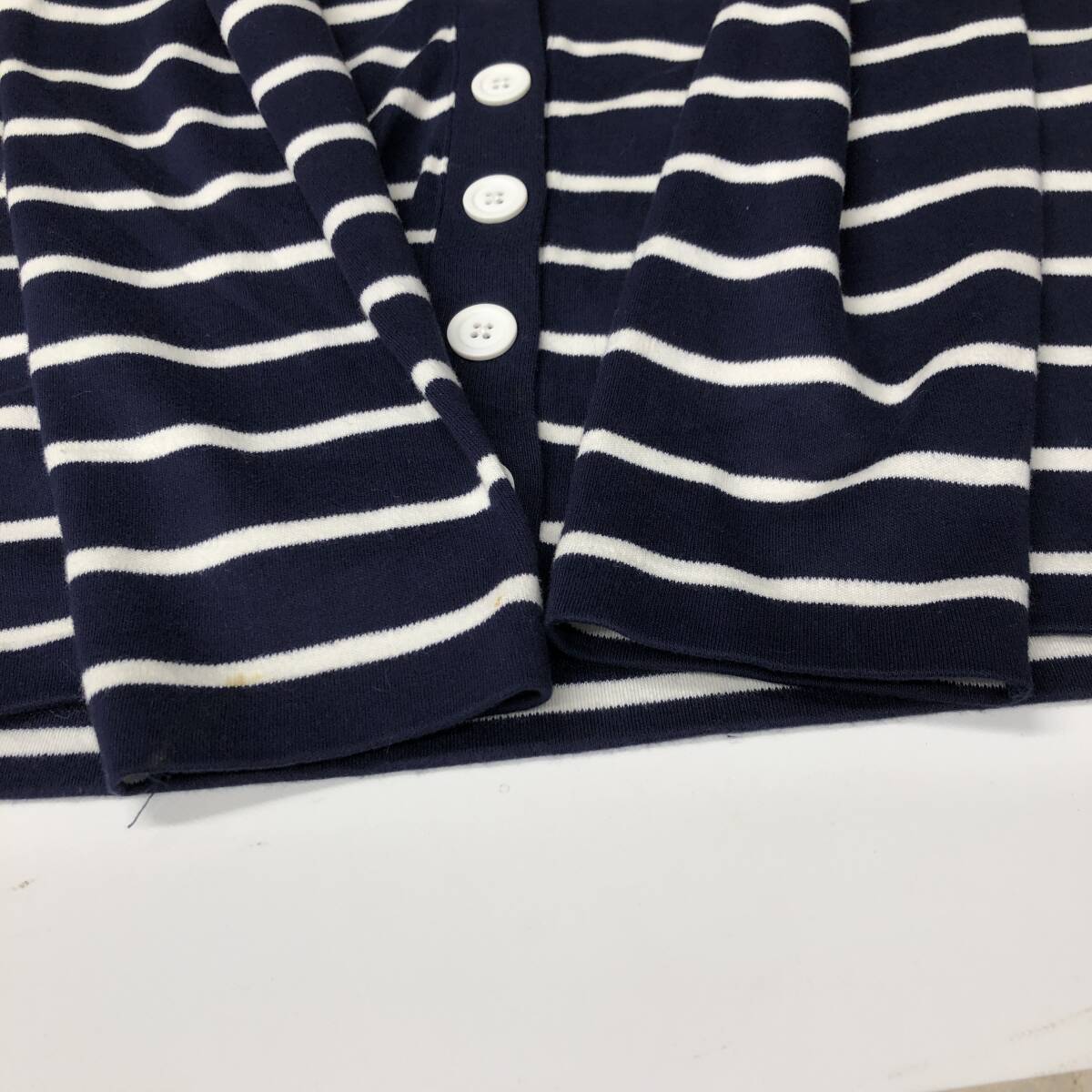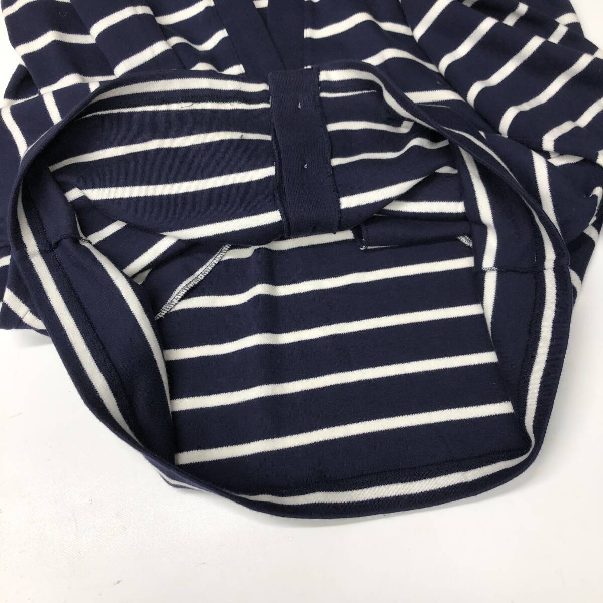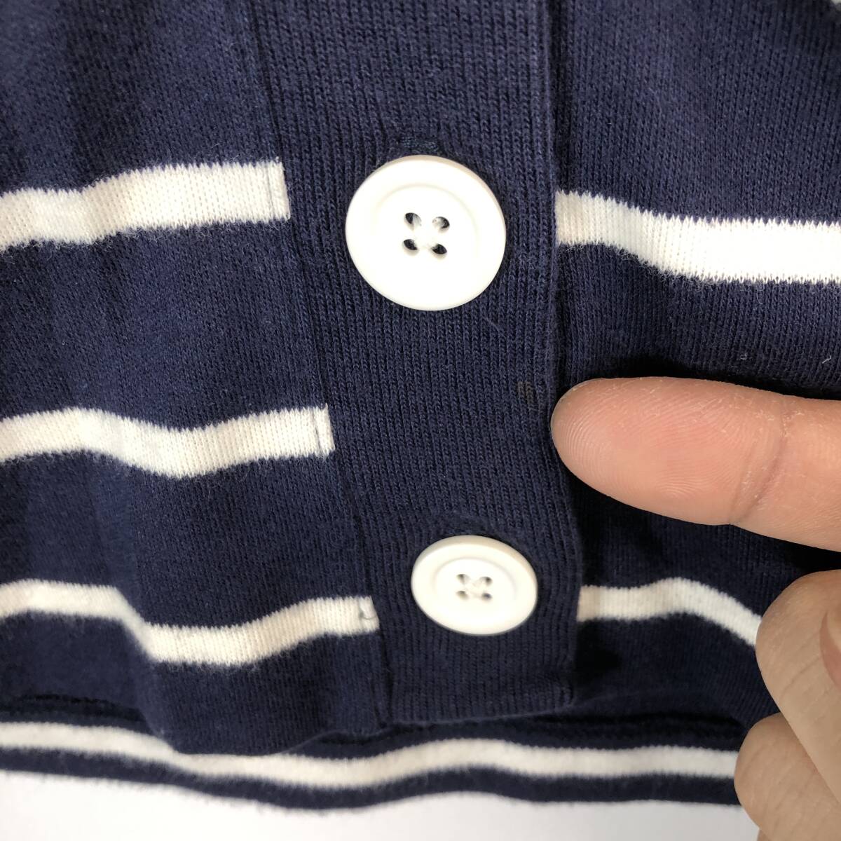 90s USA製 ランズエンド(LAND'S END) コットンカーディガン ボーダー ネイビー ホワイト レディースSサイズ