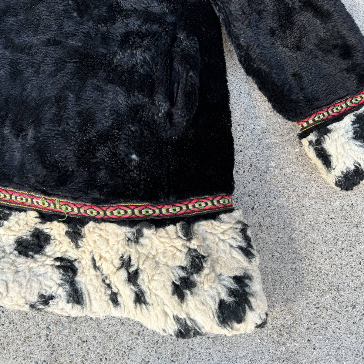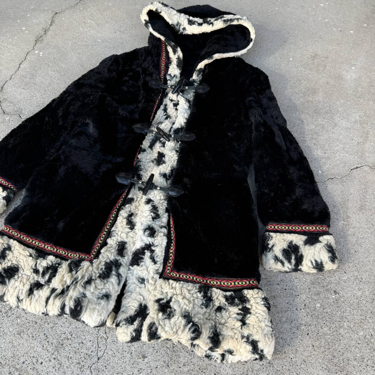 ビンテージ 60s unknown 牛柄 アニマル ボア フェイクファー コート ジャケット フード 250120