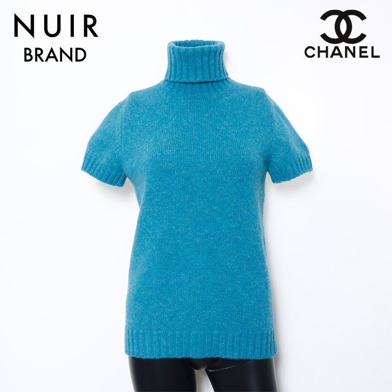 シャネル CHANEL ニット 07A 半袖 タートルネック カシミア混 Size:38 ブルー