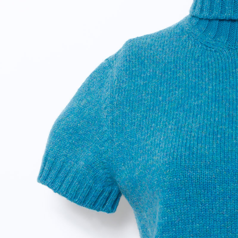 極美品 CHANEL 07A 半袖 タートルネック カシミア混 Size:38 ニット ブルー