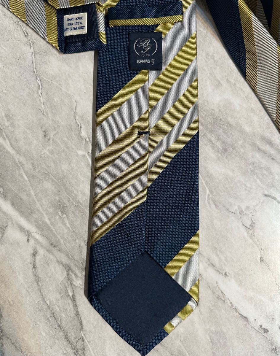 ・上質なシルク100%を使用したレジメンタル柄がお洒落な日本の職人がハンドメイドしたネクタイとなります。