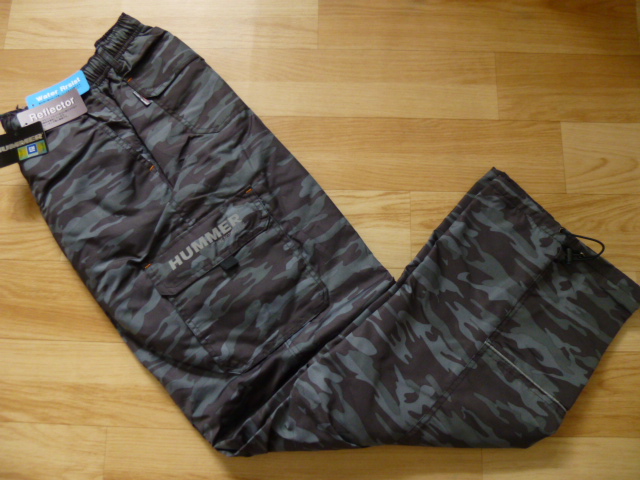 ★HUMMER 裏フリース 黒 迷彩 カーゴパンツ★防寒ズボン★3L/カーゴズボン