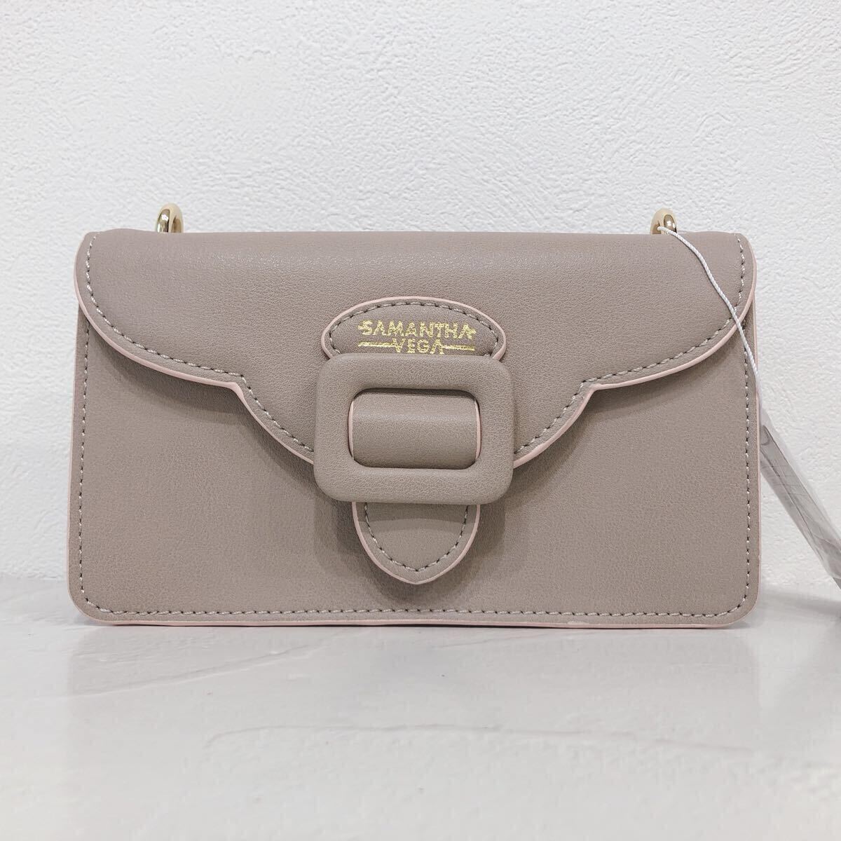 落ち着いたグレージュカラーにピンクのパイピングがとてもお洒落なSamantha Vega ミニバッグです!