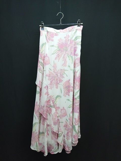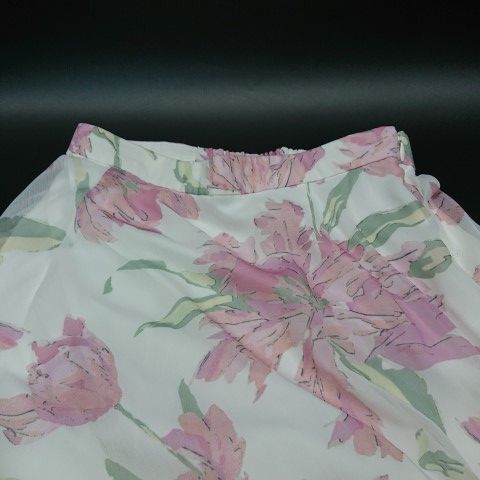 ◇ rienda リエンダ 花柄 フリル 綺麗め 上品 ウエストゴム ロング フレア スカート サイズM ピンク系 レディース E