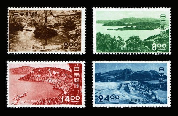 1951年 第1次国立公園切手 十和田 4種完 糊落ち 未使用