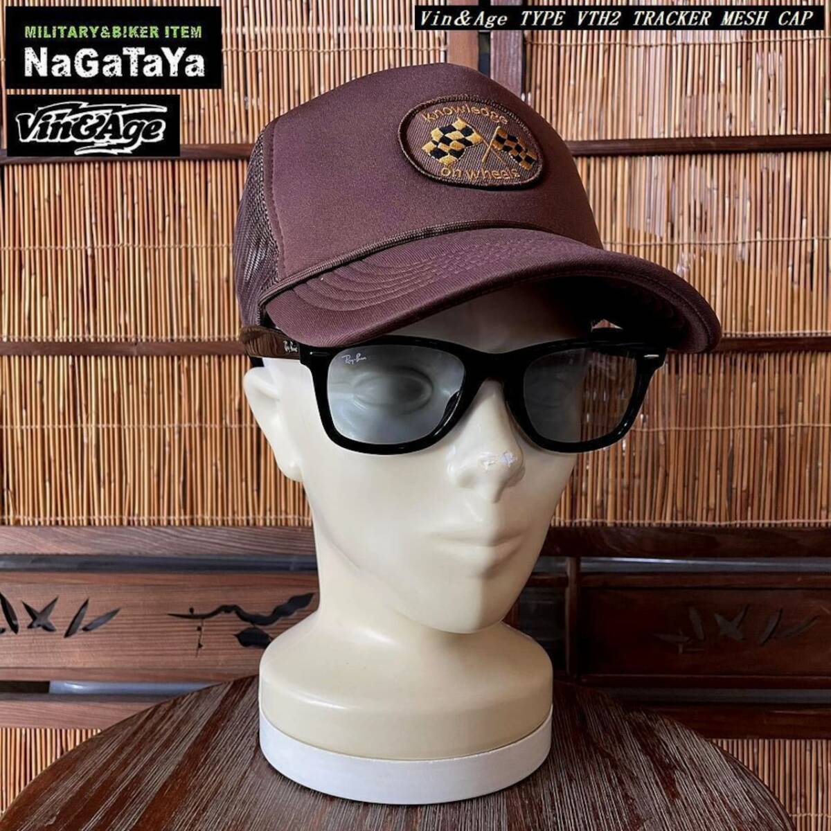 Vin&Age ヴィンアンドエイジ TYPE VTH2 70's チェッカーフラッグ トラッカーメッシュキャップ ブラウン 茶色 TRACKER MESH CAP