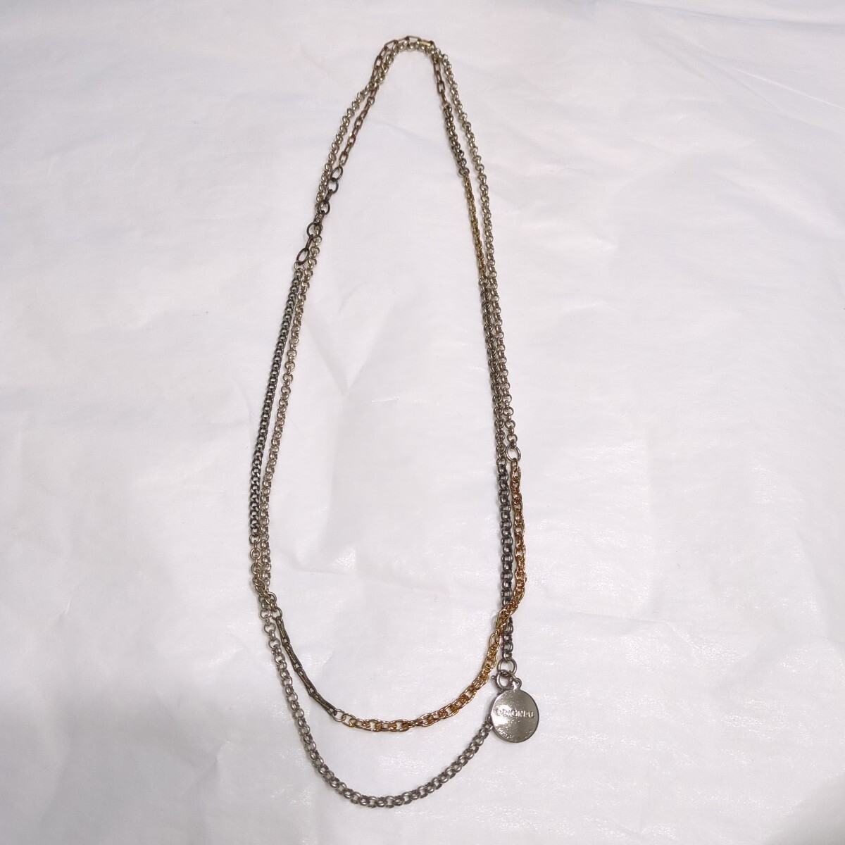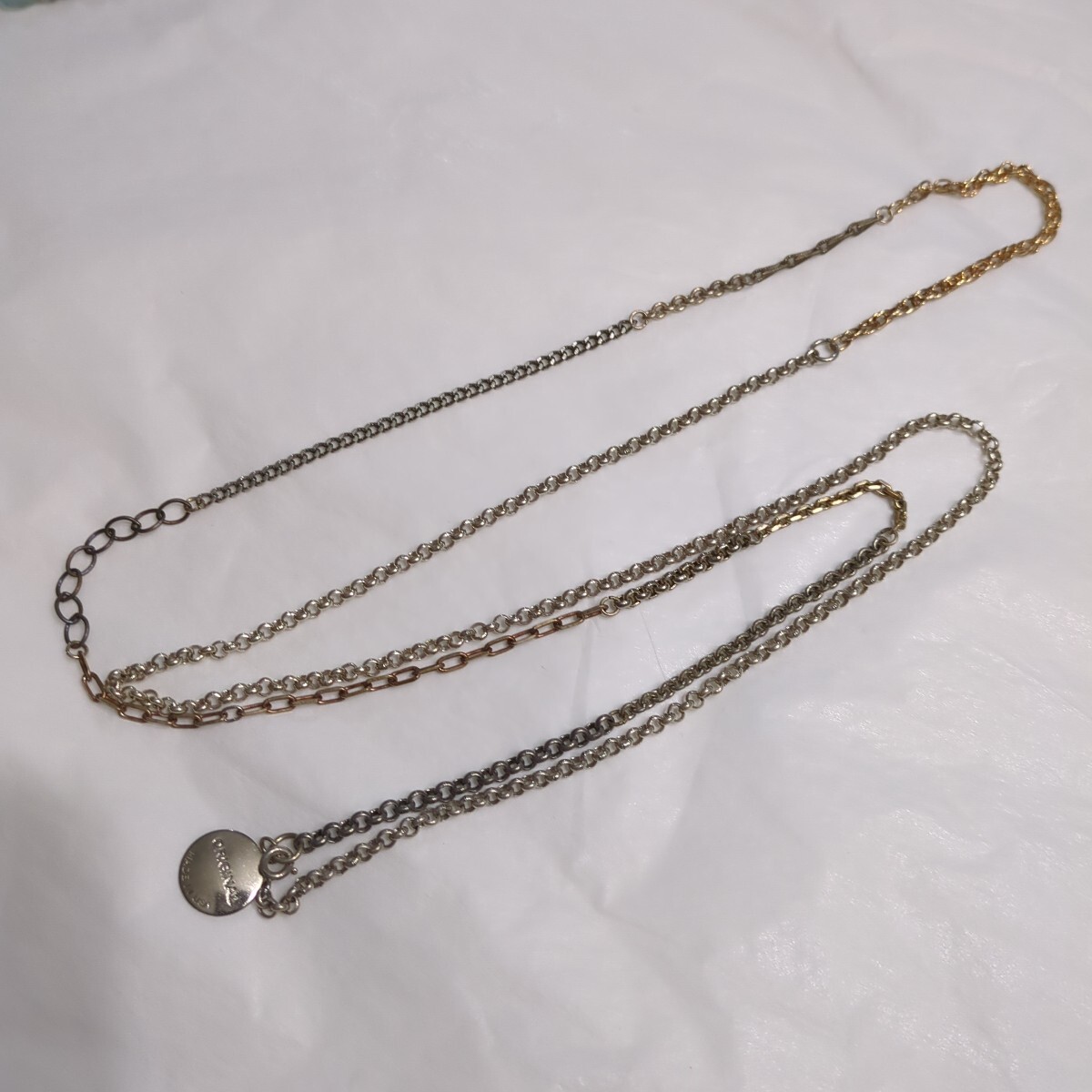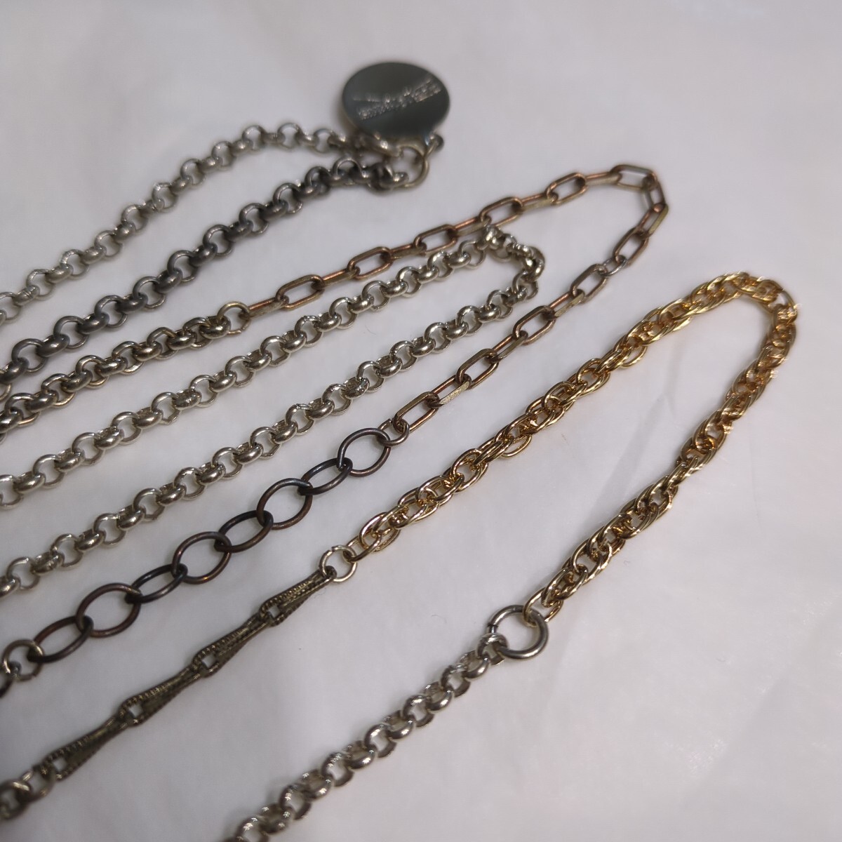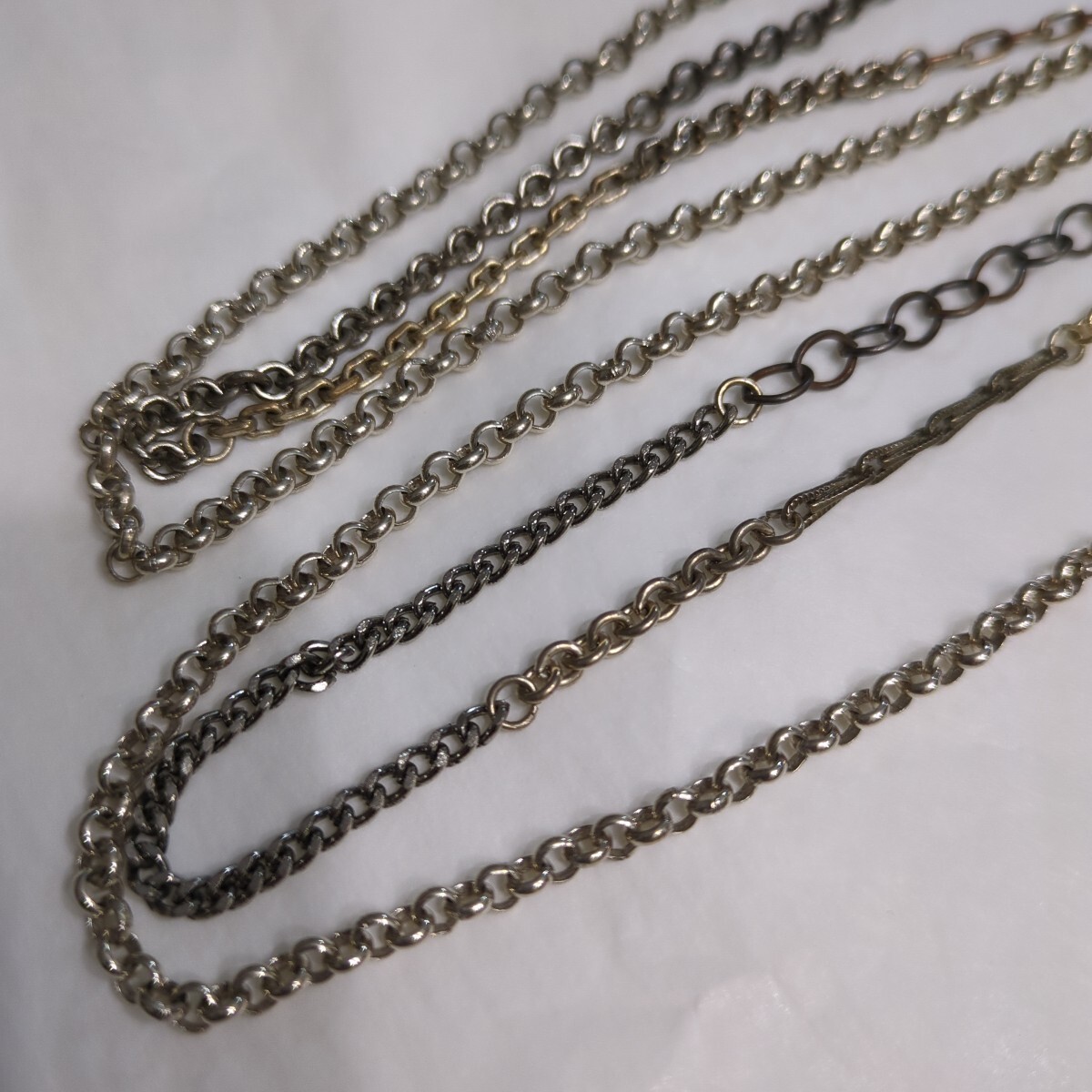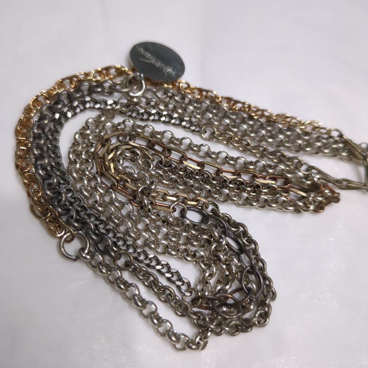 注意事項 :いろんな形のチェーンが組み合わされているネックレスです。素材はシルバーも含まれていますが、金色に見えるものもあり、ミックスされた品物です。予めご了承の上ご検討下さい。