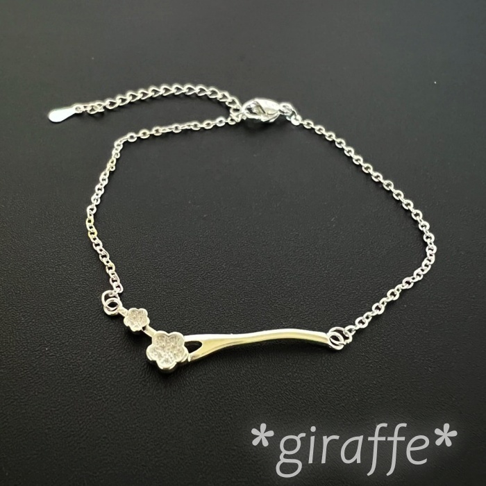 D046 匿名配送 ブレスレット レディース s925 シルバー 花 フラワー 梅 チェーン 細い
