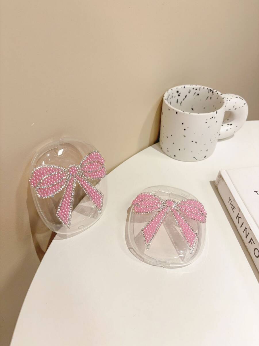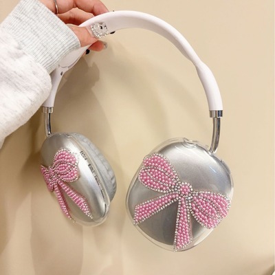AirPods Max 対応ケース 柔らかいTPU透明ケース傷防止 Max ヘッドホン用保護カバー薄型 ソフト リボン ピンク
