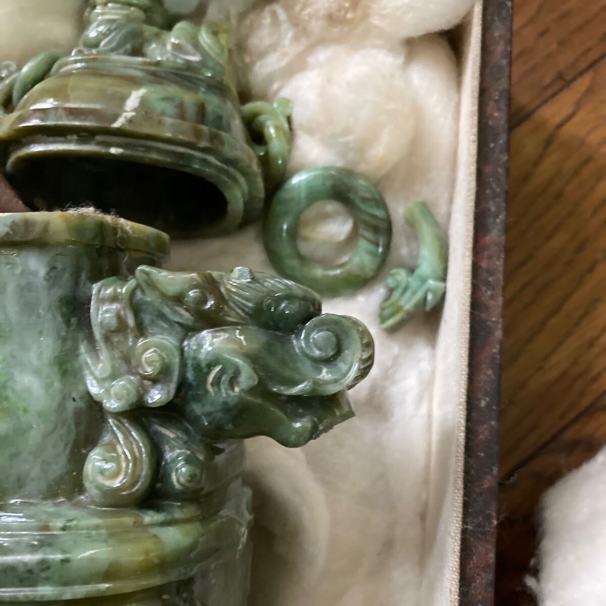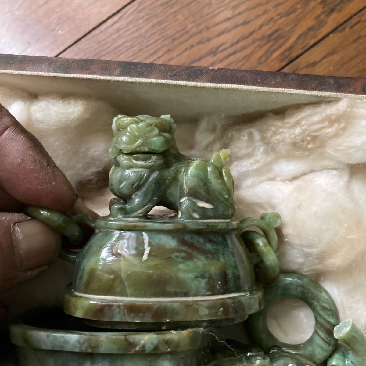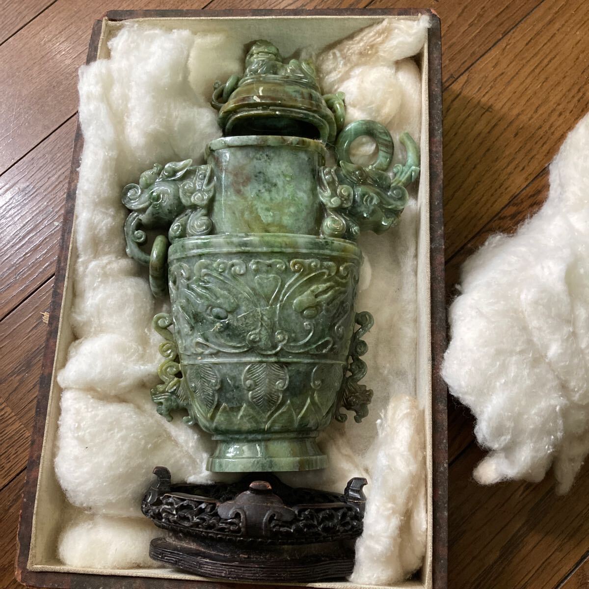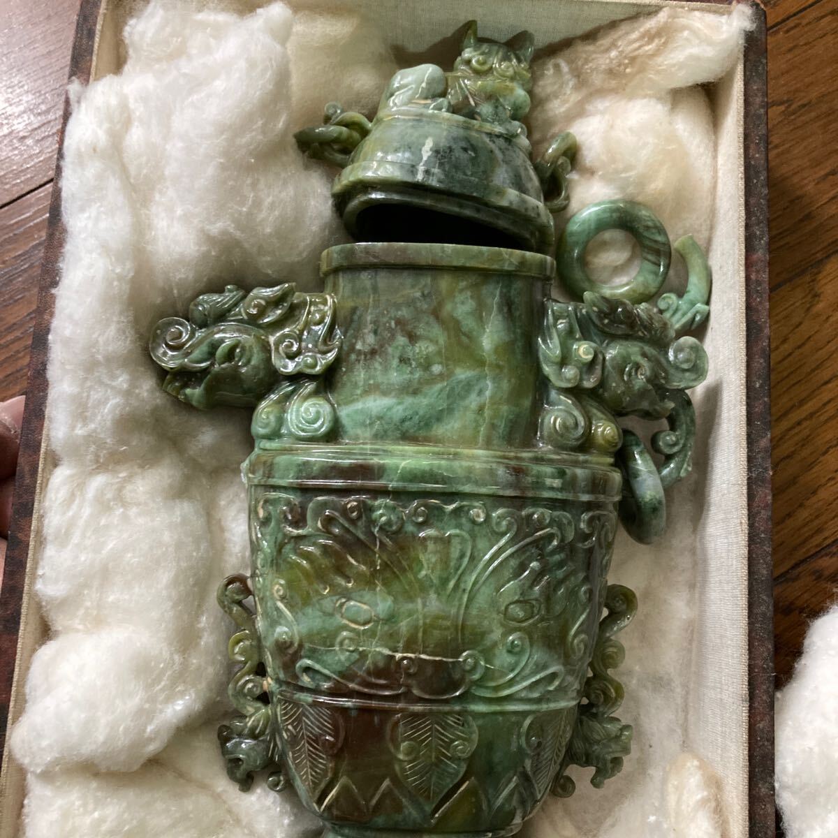 【雑貨】 獣摘み 耳付け 玉壺 翡翠? 香炉 レトロ アンティーク 美術工芸品 オブジェ 置物 縁起物 インテリア 仏教美術