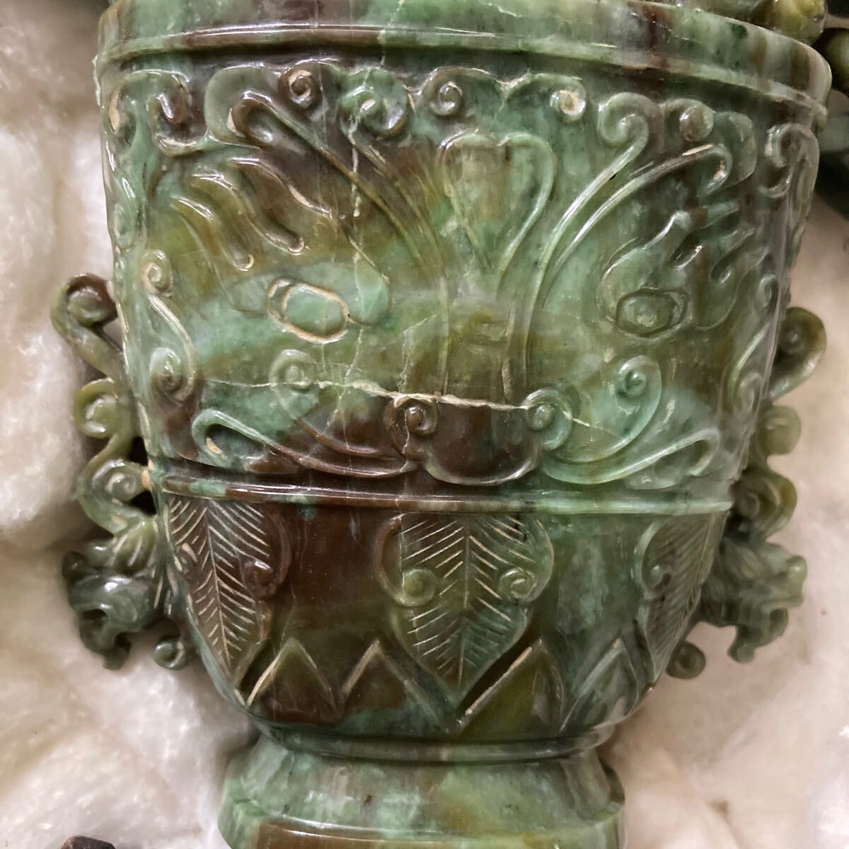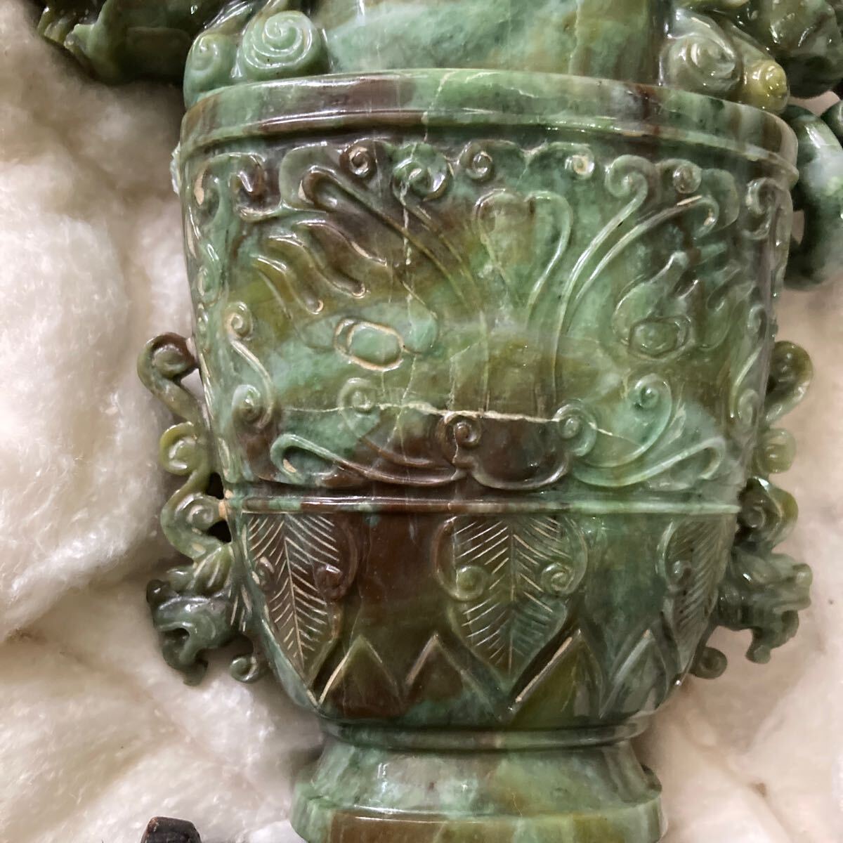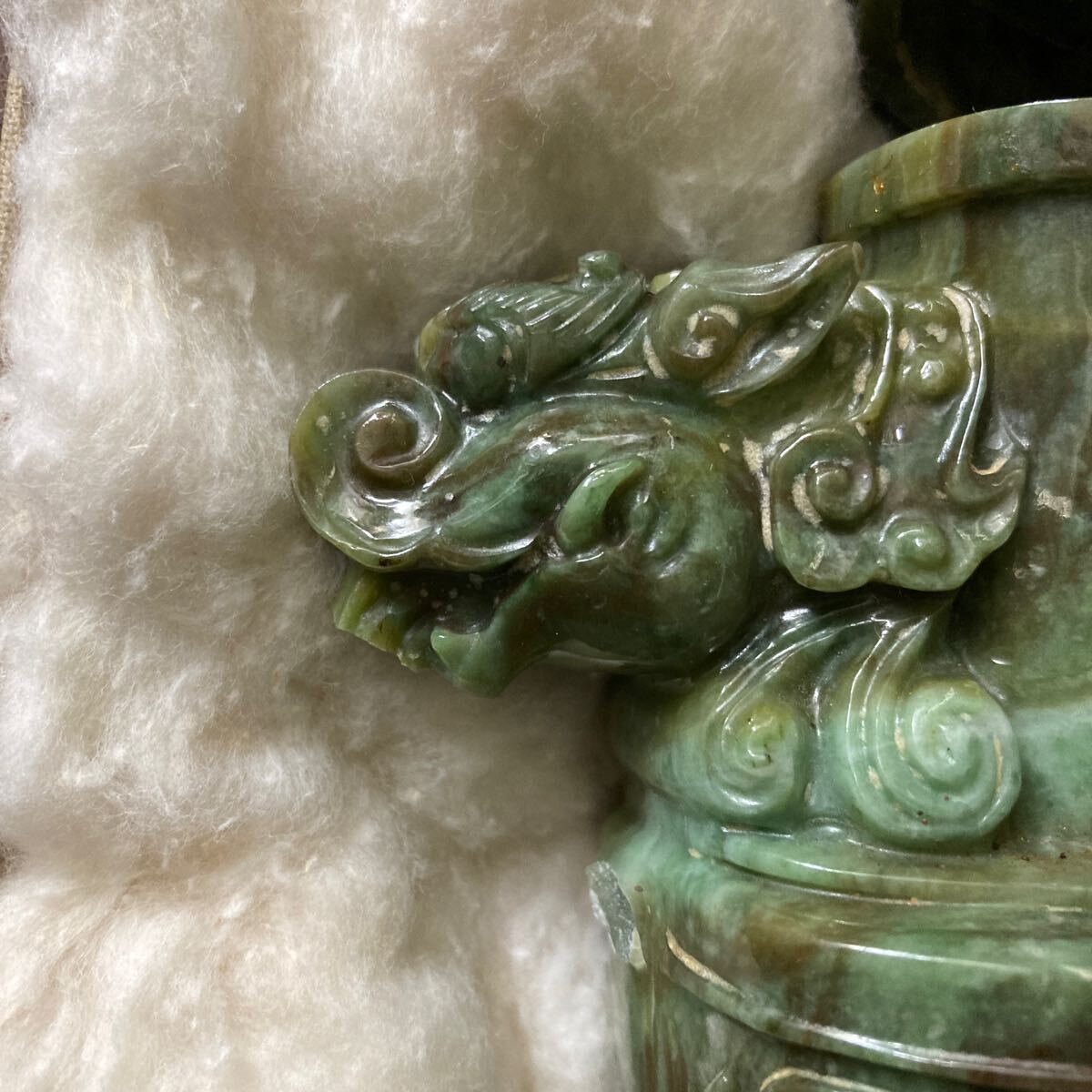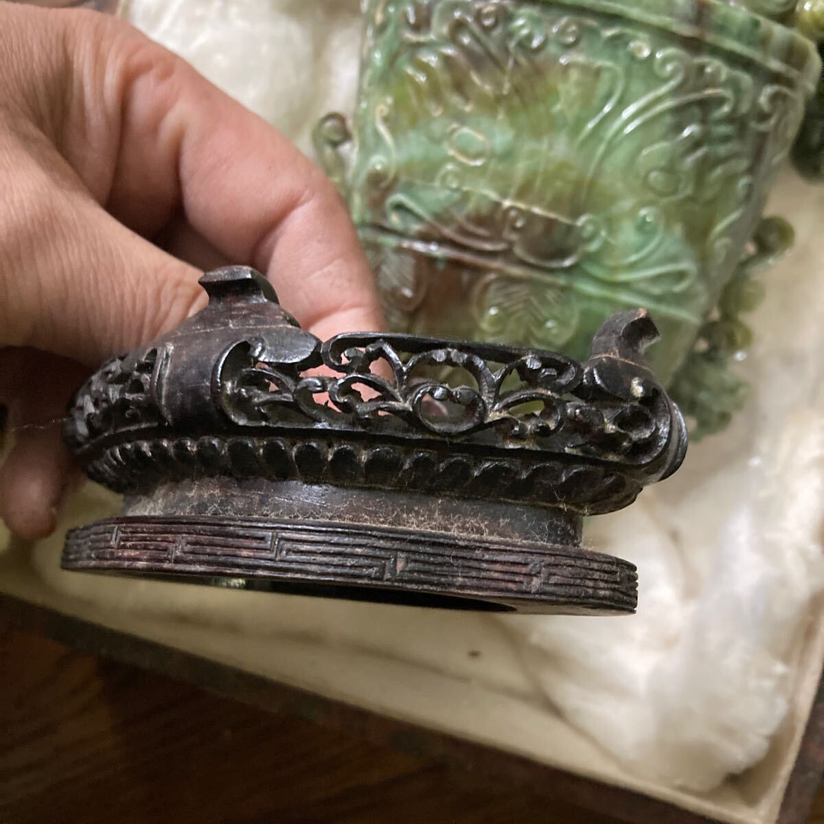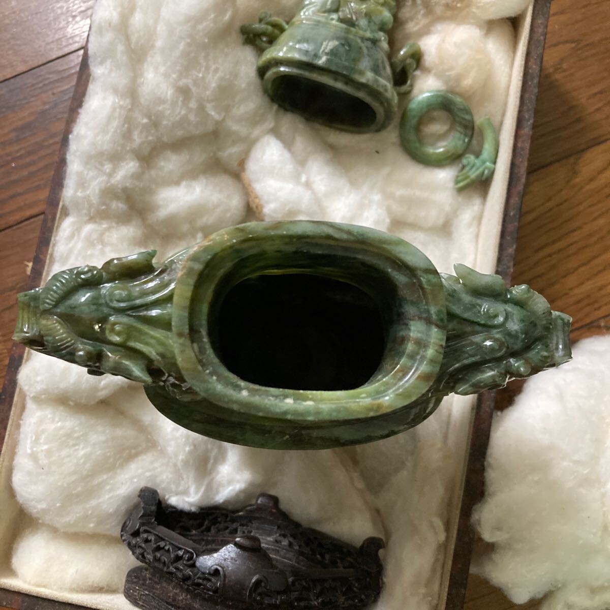 【雑貨】 獣摘み 耳付け 玉壺 翡翠? 香炉 レトロ アンティーク 美術工芸品 オブジェ 置物 縁起物 インテリア 仏教美術