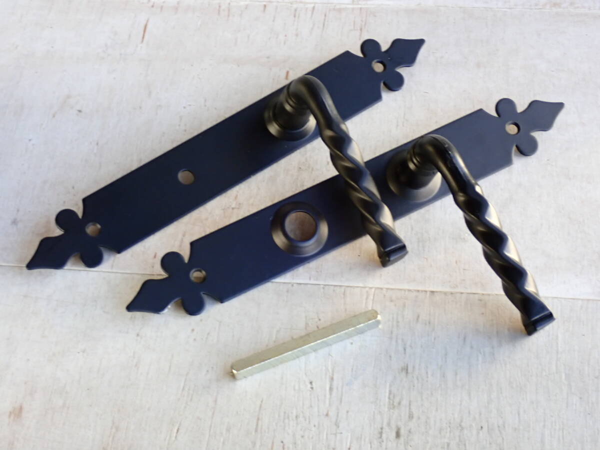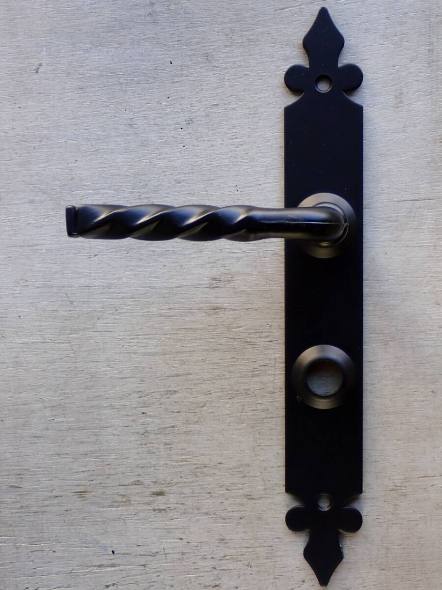 フランスアンティーク ドアノブ ドアプレート付き ブロカント ビンテージ 建具 家具パーツ 装飾 蚤の市 アイアン 鉄製 ptt