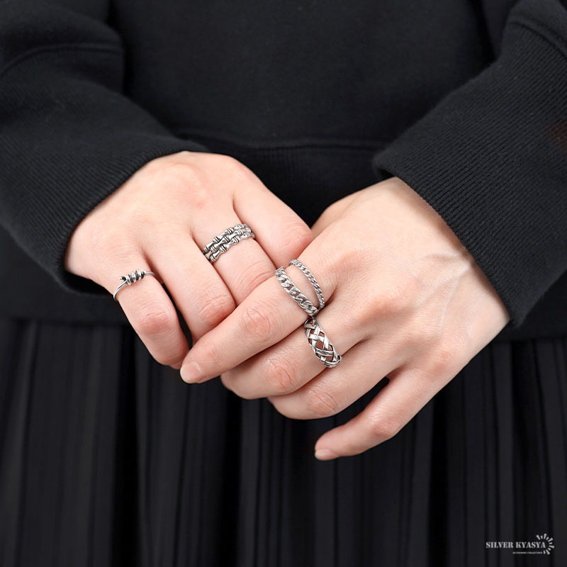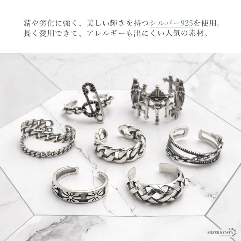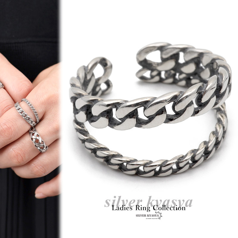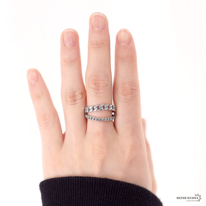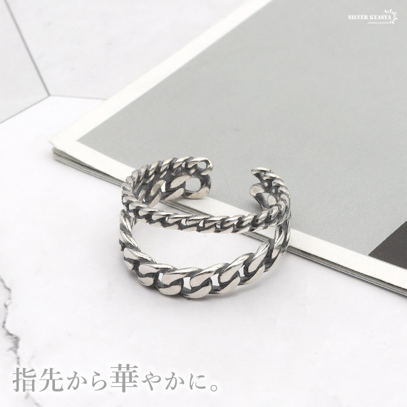 シルバー925 リング 指輪 レディース シルバー 喜平モチーフ 二連風リング キヘイ チェーン 金属アレルギー フリーサイズ