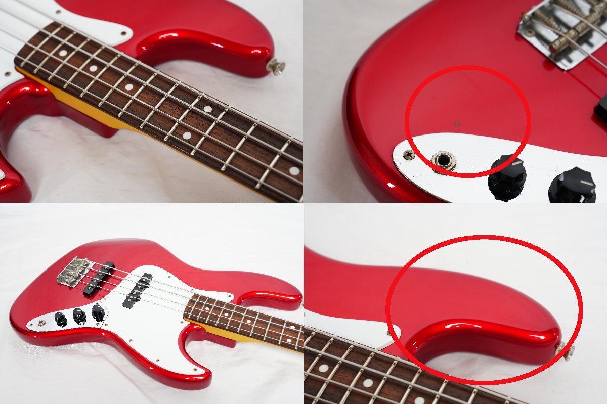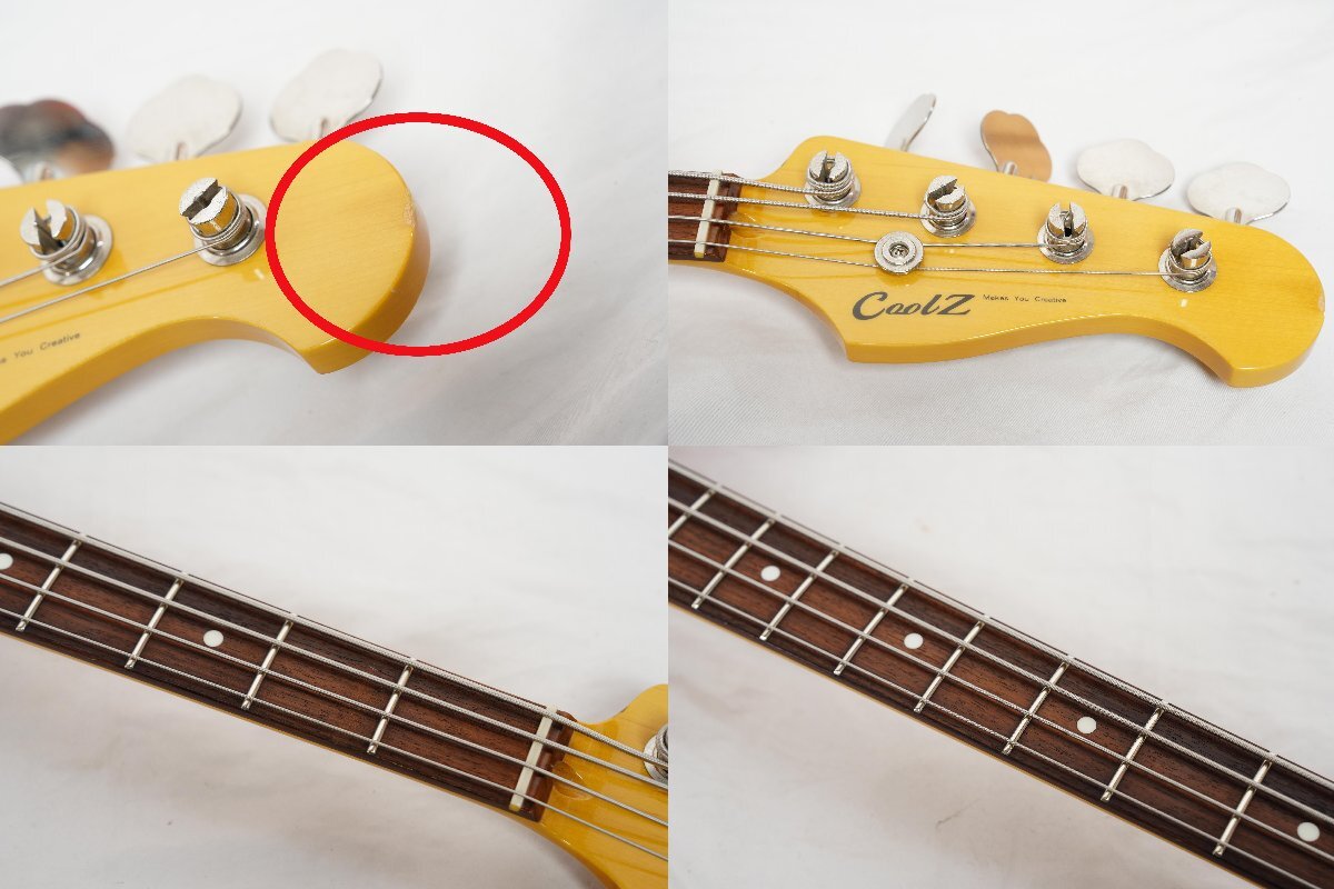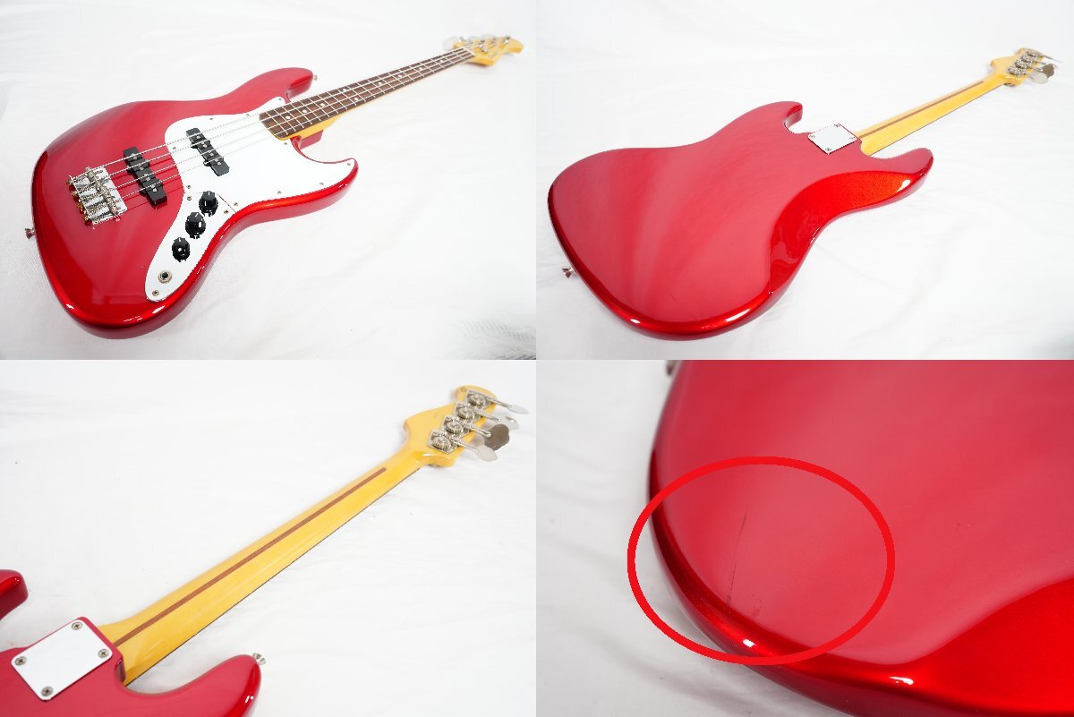 フジゲンが製造を行っている島村楽器オリジナルブランドCool Zのジャズベース ZJB-1R CAR(オープンプライス、市場価格¥71064(税込))です。製造は国内屈指のギター製造メーカーフジゲンによるもので品質は間違いない丁寧な作りです。 低域のクリアーでナチュラルな高品質なサウンドでジャズ、ロックまで幅広いジャンルで使用出来るスタンダードなジャズベースです。サークル・フレッティング・システム(C.F.S.)を採用しているためピッチの安定した抜けの良いサウンドです。 ブランドネームバリューが気にならなければコストパフォーマンスの高い1本だと思います。 ■■■以下わかる範囲でのスペックです。■■■ ボディ材 : Alder MAPLE 指板 : Rosewood ピックアップ : オリジナル LOUIS JBピックアップ 重量 :約4.2kg ナット幅 : 約38.9mm シリアルナンバー : MADE IN JAPAN F1110×× カラー : CAR (Candy Apple Red) フレットは主観ですが約8~9部山程度残量があります。 ■商品の状態■ *数カ所傷、擦れ程度で使用感は少なくコンディション良好です。 *ネックはほぼフラットで反りは感じられません。 *動作確認済みです。 ■付属品■ 社外ソフトケース | ||