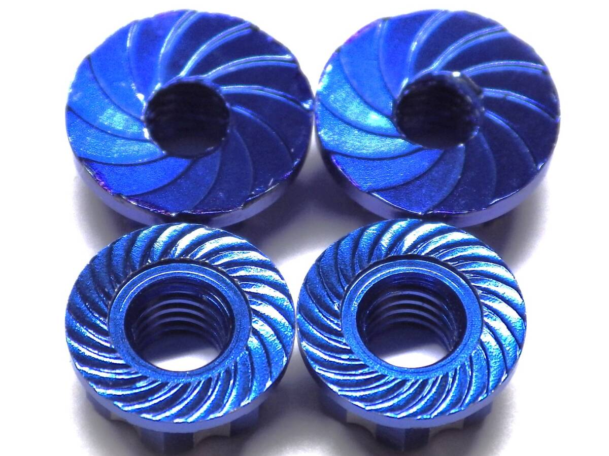 4mm アルミ製セレート付フランジ ホイールナット 青 F用小×2個+FR用大×2個=合計4個setの価格です。