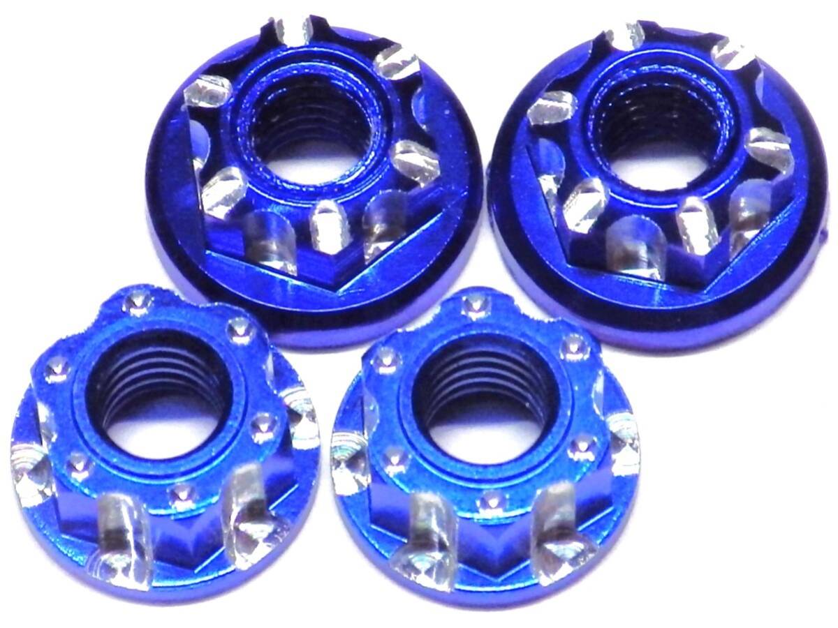 4mm アルミ製セレート付フランジ ホイールナット blue F用小/FR用大 彫刻加工 各2個set 新品 (検 1/10 RWD ドリフト SDYD2GRK レーヴディ