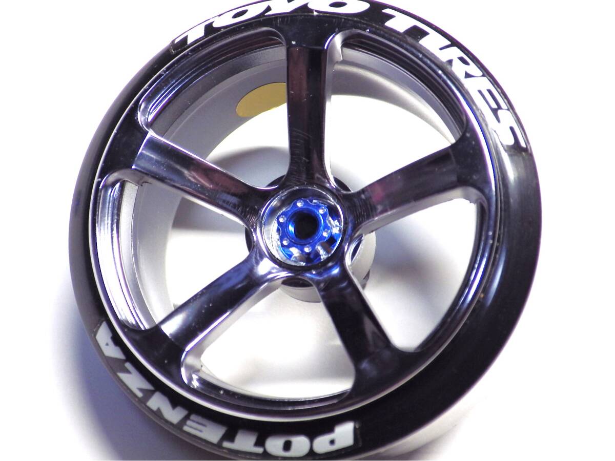 小さい方はRWD(SD/YD2などの)2駆ドリフトのフロントホイールに最適な超軽量ホイールナットです。