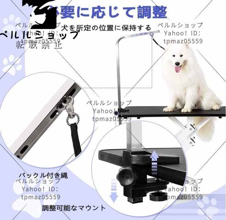 ●クランプオンスタイルの調節可能なステンレススチールアームとグルーミングリーシュでペットを固定。