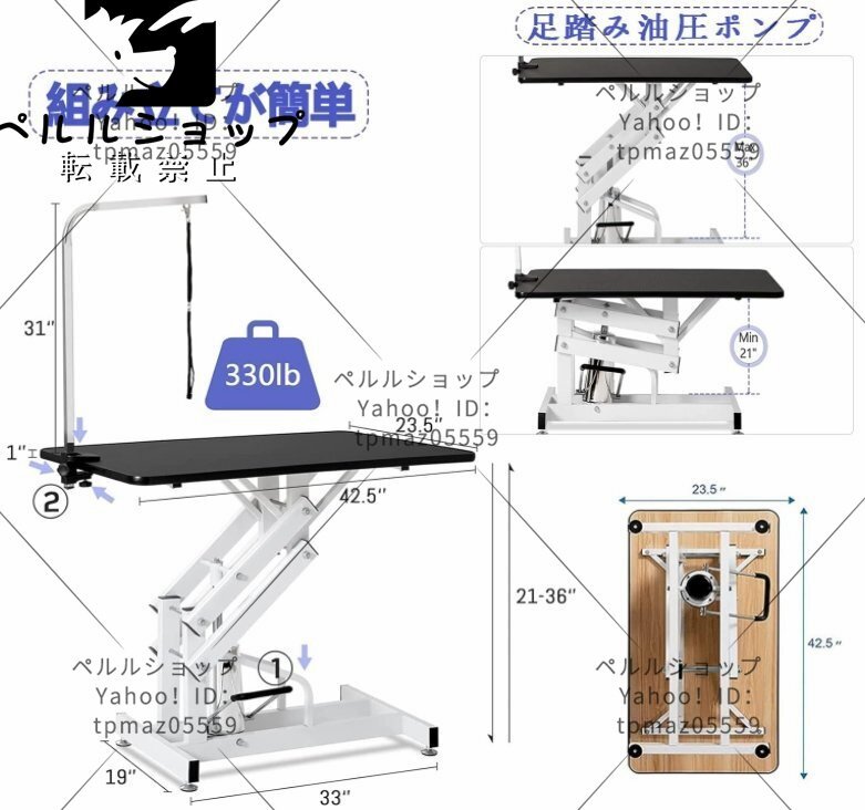 トリミングテーブル 油圧式 大型犬/中型犬/小型犬 猫/犬用グルーミングテーブル 高耐久 頑丈 ペット トリミング台 油圧昇降式テーブル 耐荷