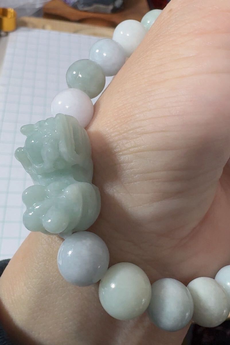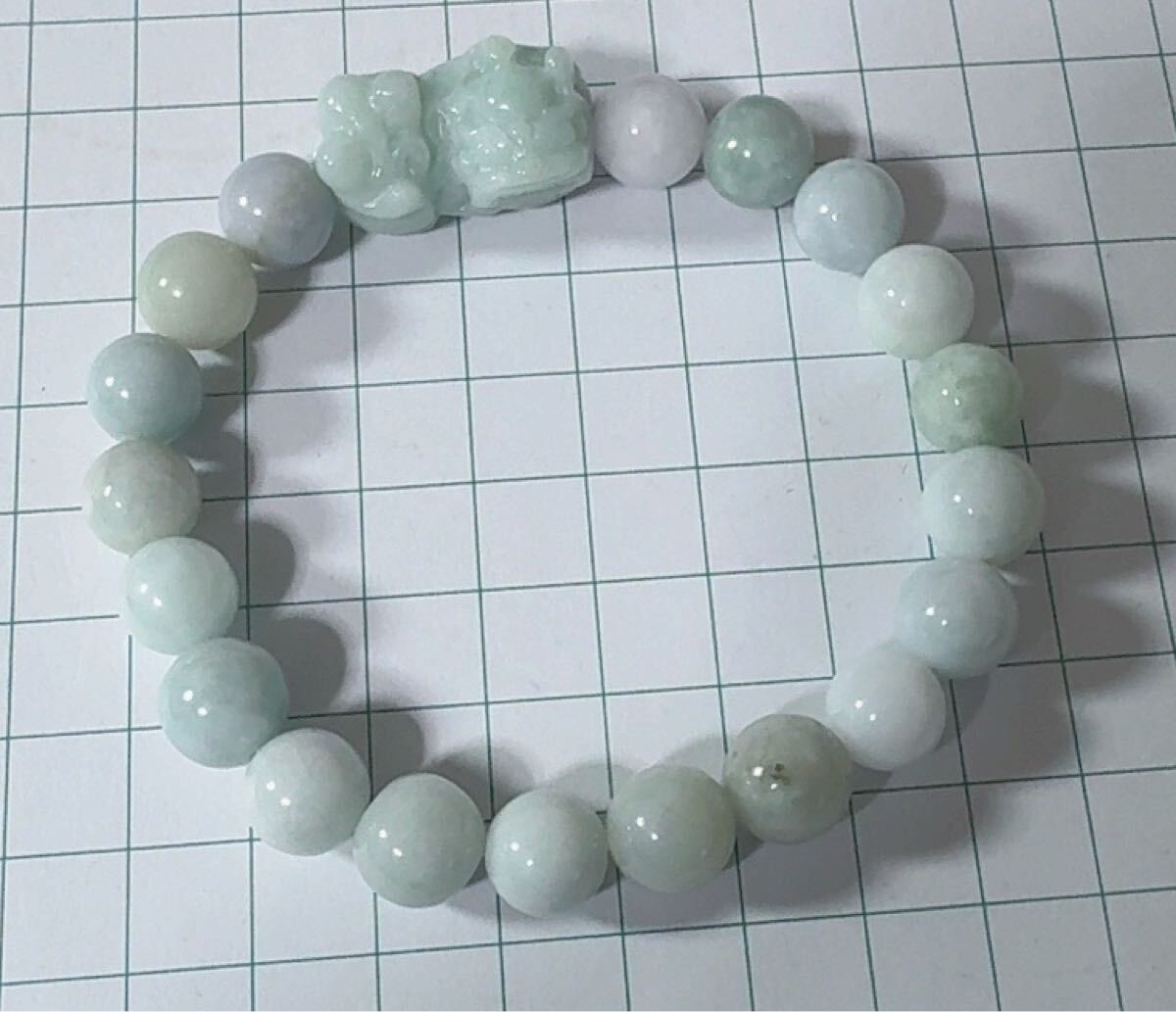 R2-0432 天然本翡翠《本物保証》 貔貅ブレスレット18cm/10mm 一点物 魔除け 昇進 成功 風水 金運 財運 幸運 幸福 縁起