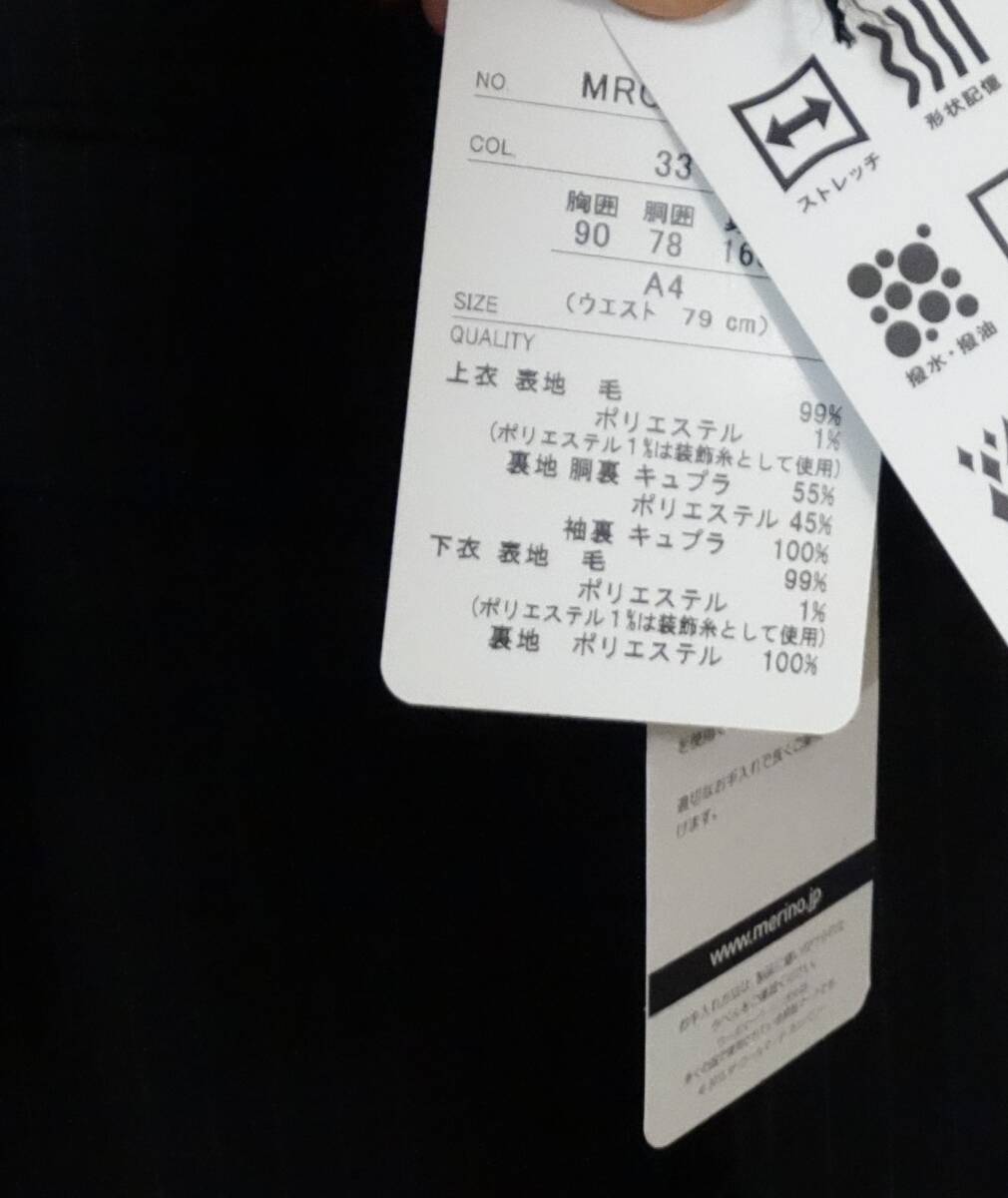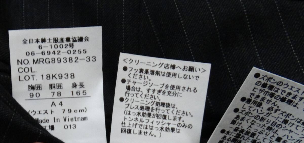 サイズはA-4のスタンダードタイプで、タグには身長165胸囲90胴囲78素材は毛99%パリエステル1%と書いてます。