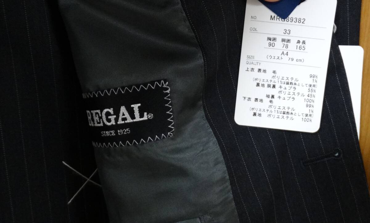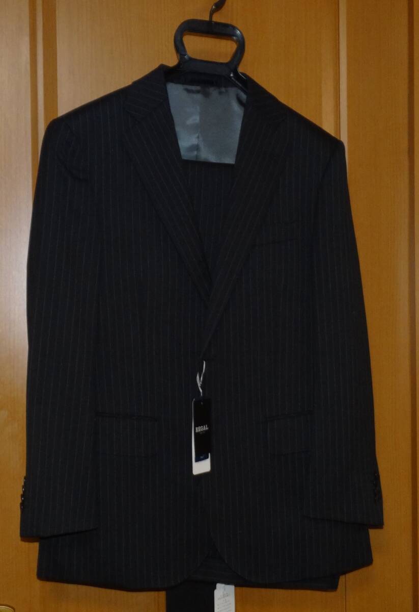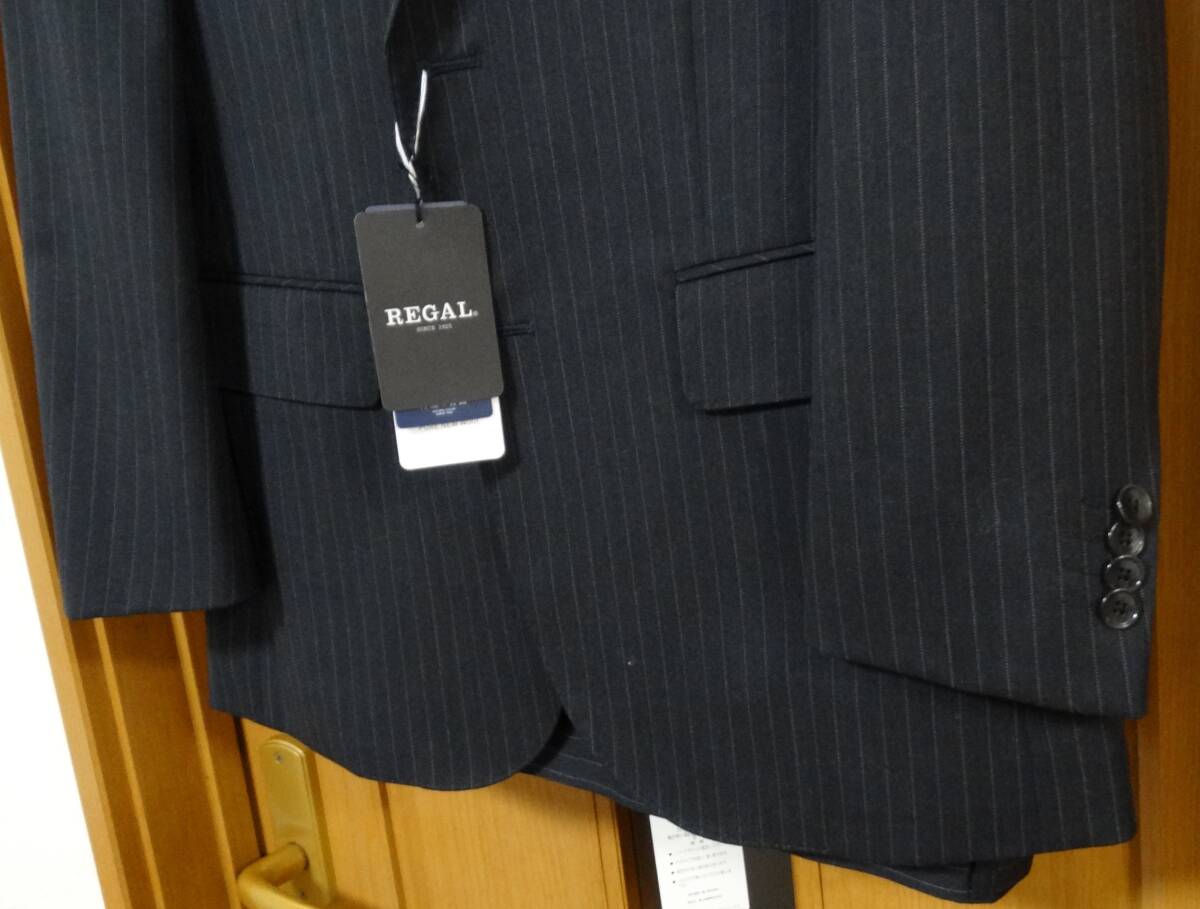 REGALの色はチャコールグレーのストライプで、サイドベンツの背抜きの未使用品です。