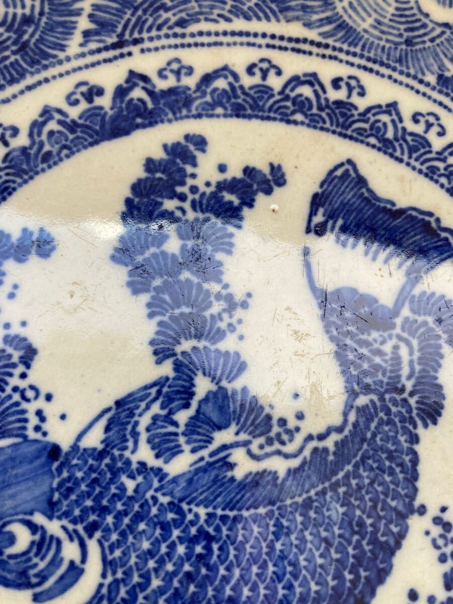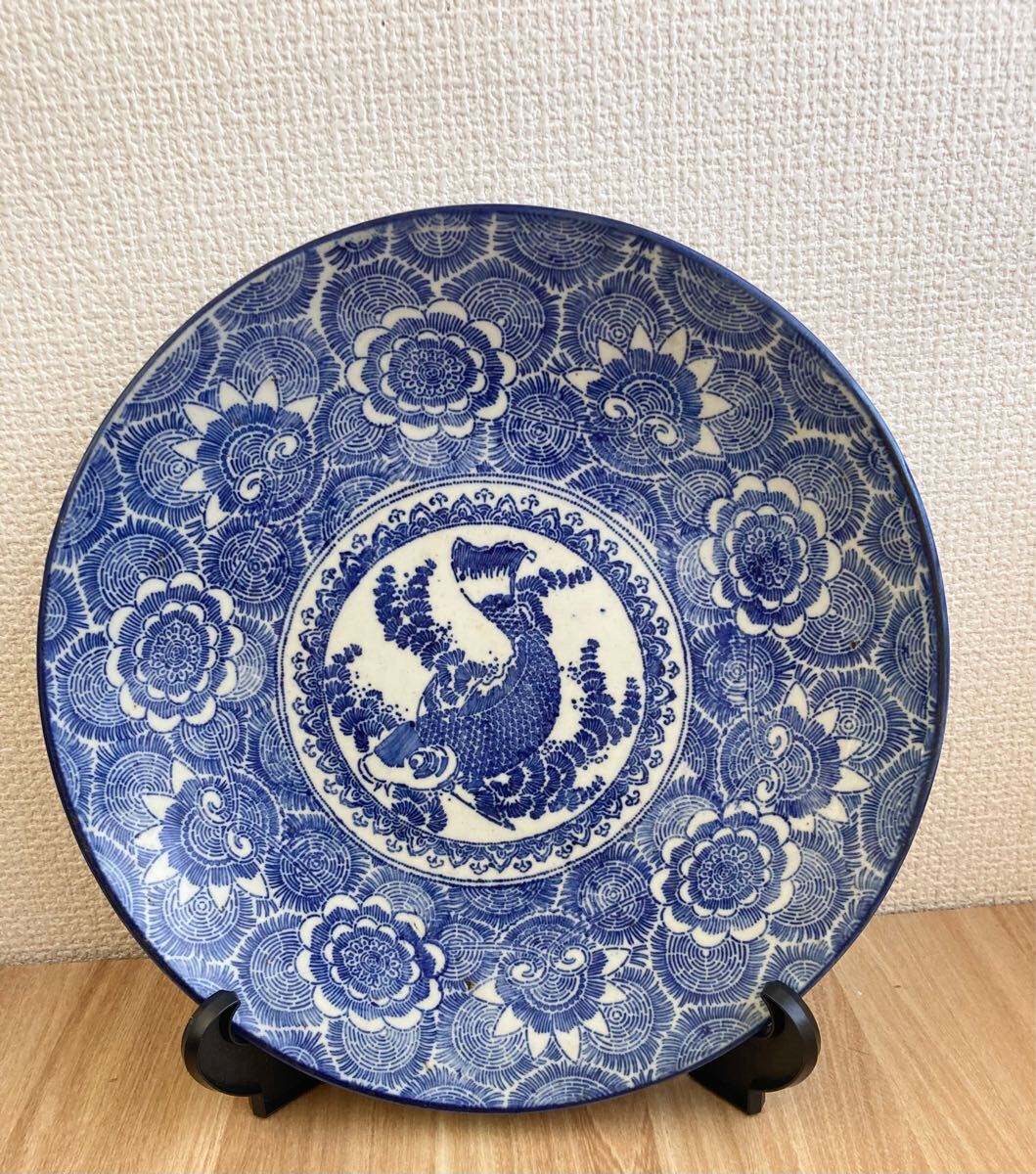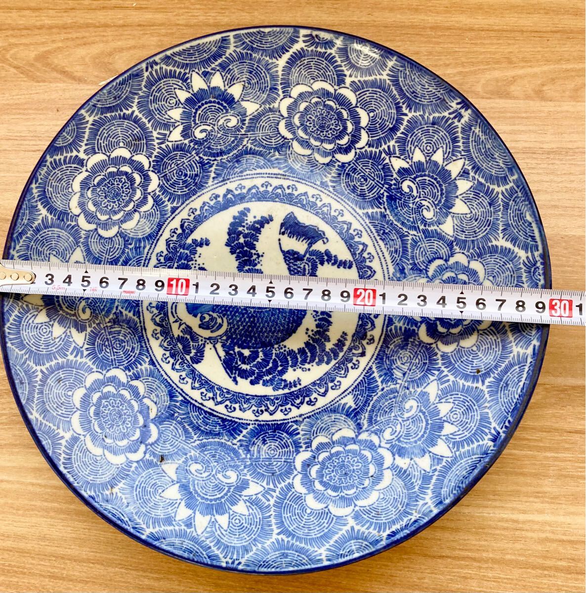 検) 伊万里焼 染付 飾り皿 錦鯉 直径29.5cm 骨董品 アンティーク 年代物