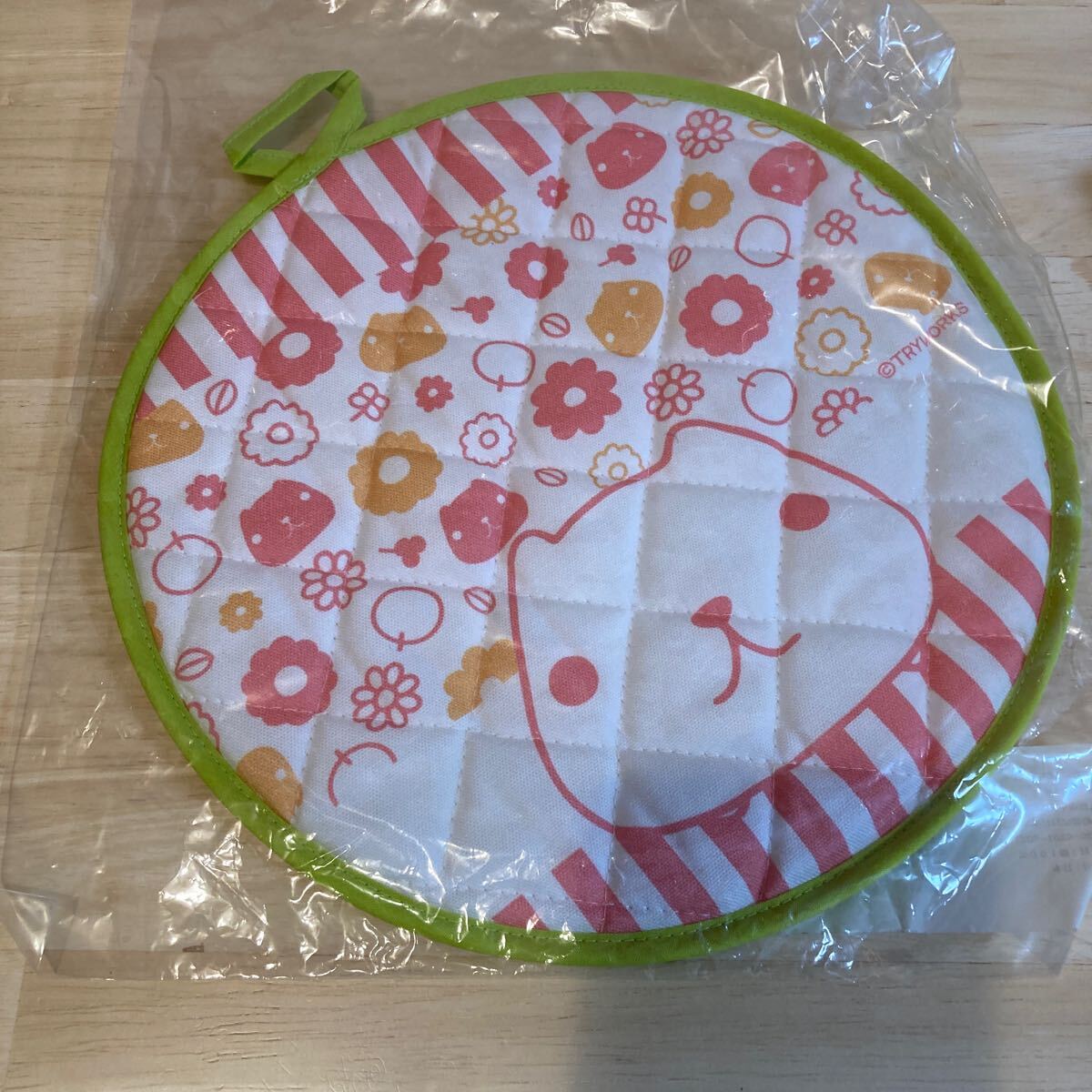 キルト生地で鍋敷きか,鍋つかみだと思うのですが可愛すぎて使えませんので出品します。