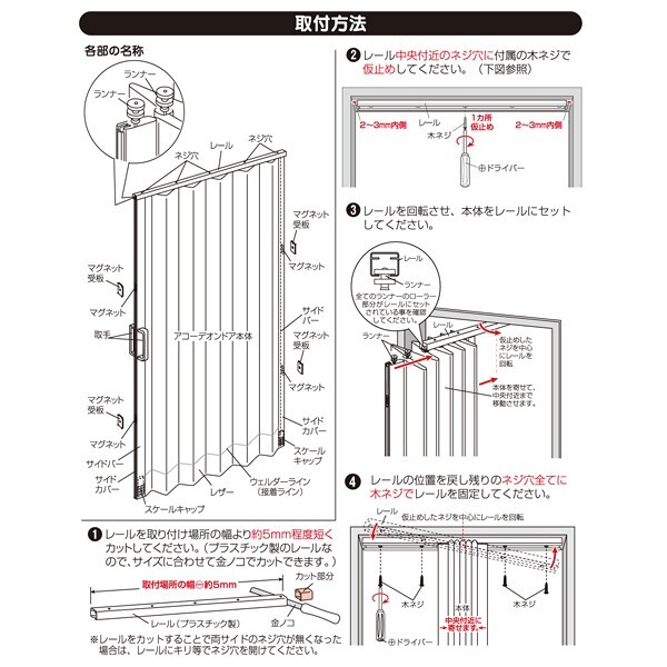 ・本製品は木ネジを使用するため、取り付け場所が木部(板厚10mm以上)であることを事前にご確認下さい。