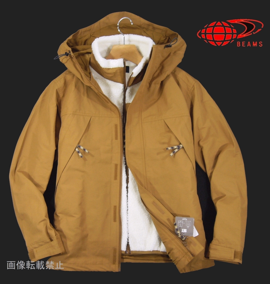 新品 ★ ビームス ボアベスト付 レイヤード マウンテンパーカー M ブラウン系 3WAY フード ブルゾン BEAMS HEART