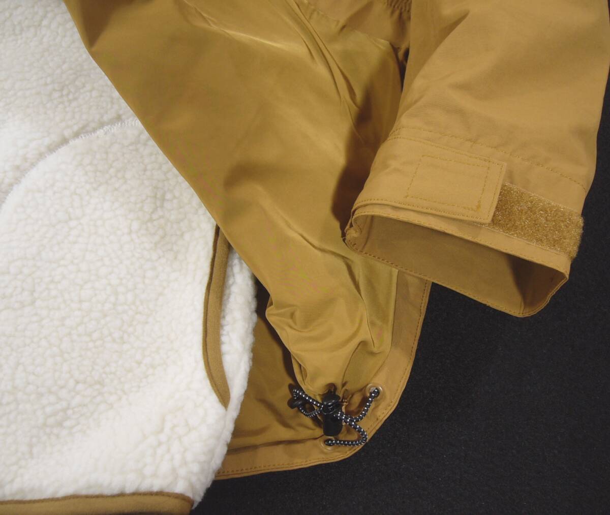 ●アウターにはコットンナイロンタッサーを使用し、しなやかさと耐久性を両立、インナーは暖かなボアフリースとマイクロフリースのボンディング素材を採用している為、気温が低い時でも暖かさをキープします。