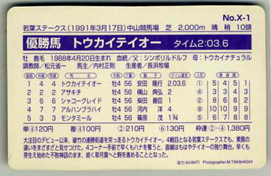 | ★まねき馬カード X1 トウカイテイオー 若葉ステークス ゴールドカード 安田隆行 写真 画像 競馬カード 即決 | |