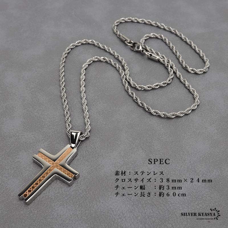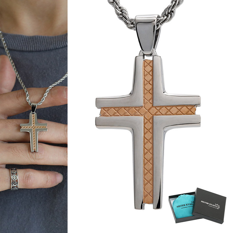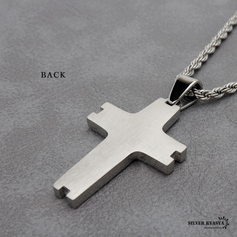 高級感 大きめ クロスネックレス キルティング 重量感 十字架 メンズネックレス ステンレス ロープチェーン付き 専用BOX付属