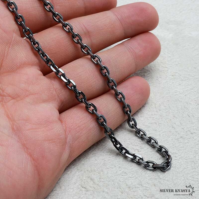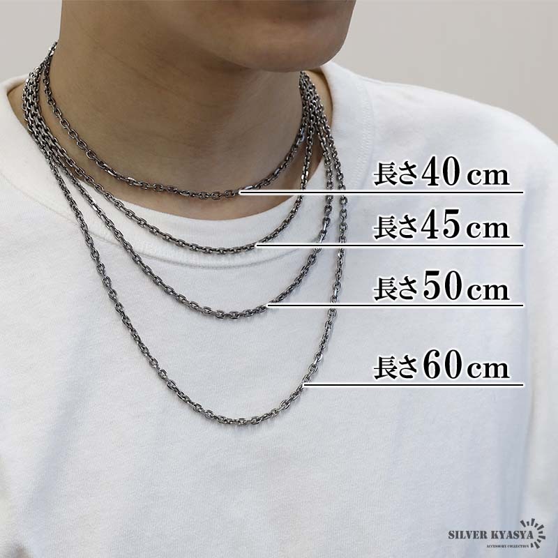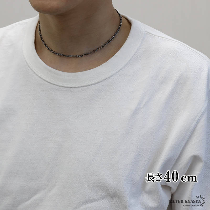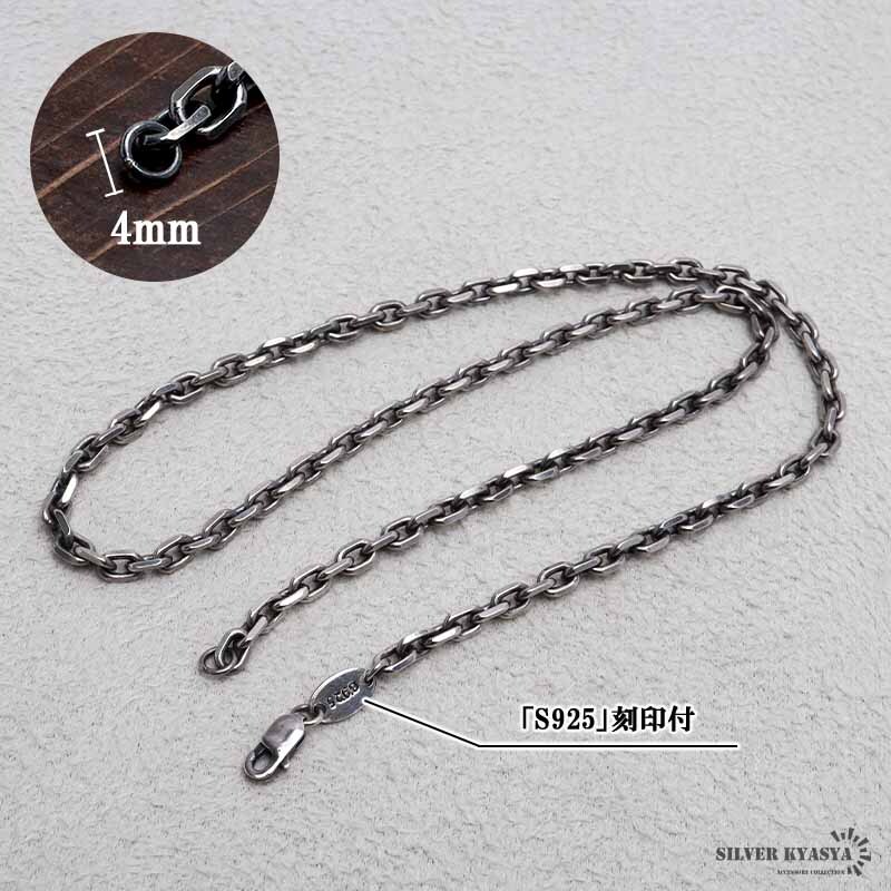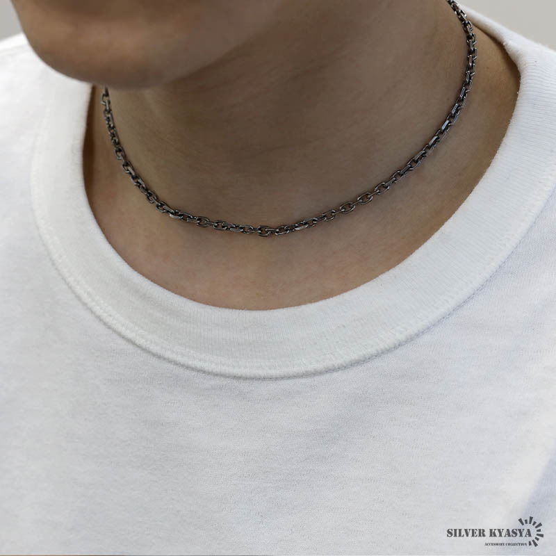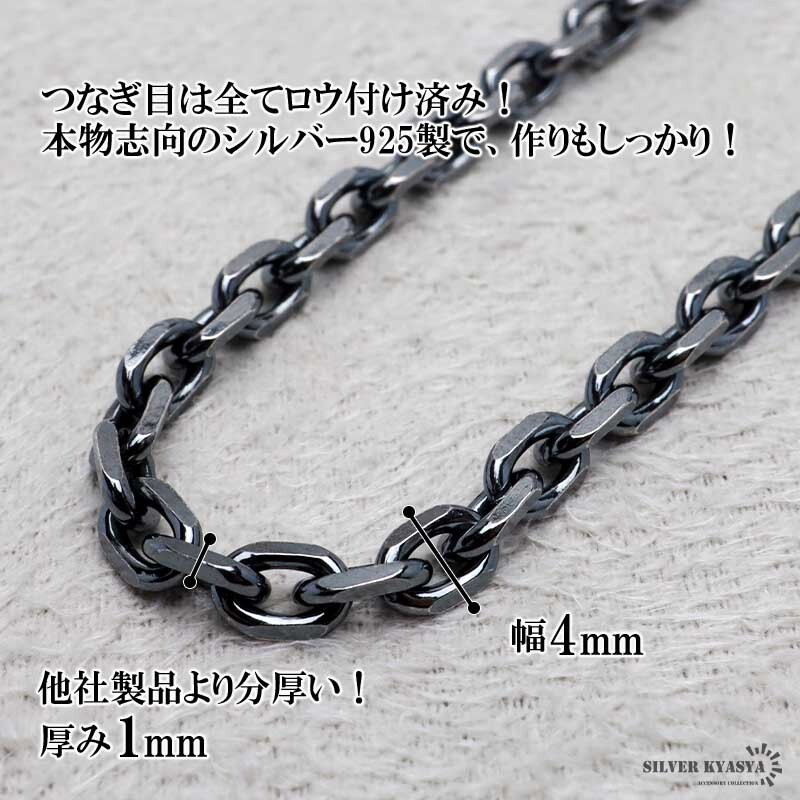 シルバー925 燻し仕上げ あずきチェーン ネックレス 幅4mm 40cm 4面カット 黒 重厚 メンズ 男性 金属アレルギー対応