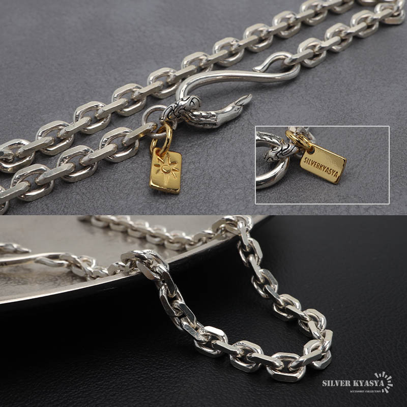 シルバー925 イーグルフック チェーンブレスレット シルバー 4面カット チャーム付きイーグルブレスレット 金属アレルギー対応