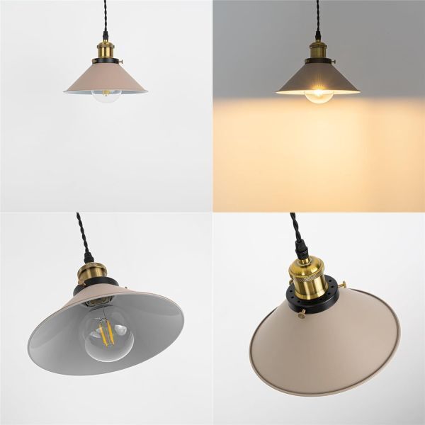 ケビン ペンダントライト コンセント式 吊り下げライト コードに調光スイッチつき 調光対応 口金E26 電球別売り 直径22cm【カーキ】